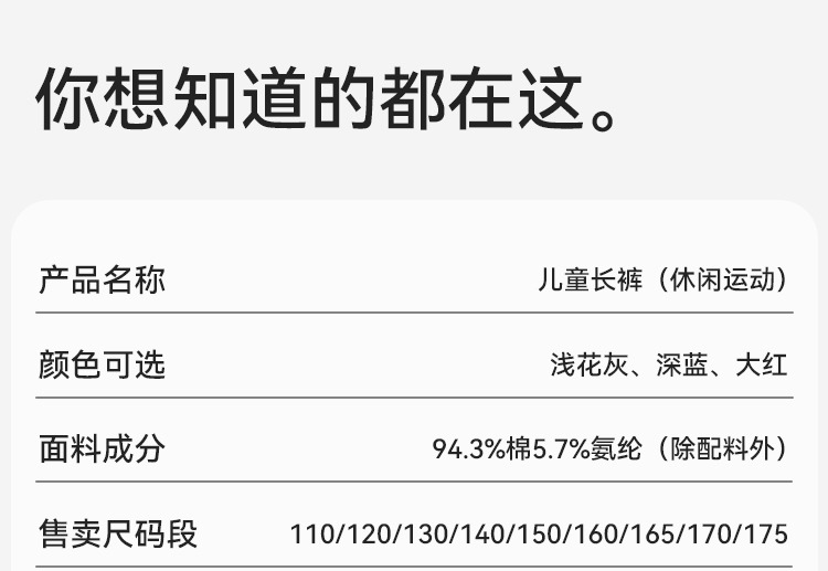 【英氏】【110-175】男童春秋休闲运动裤