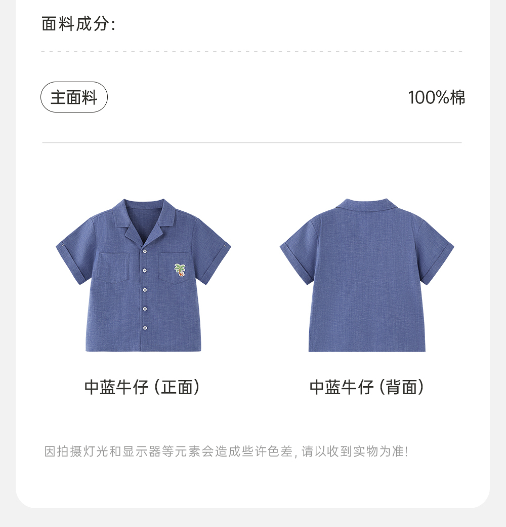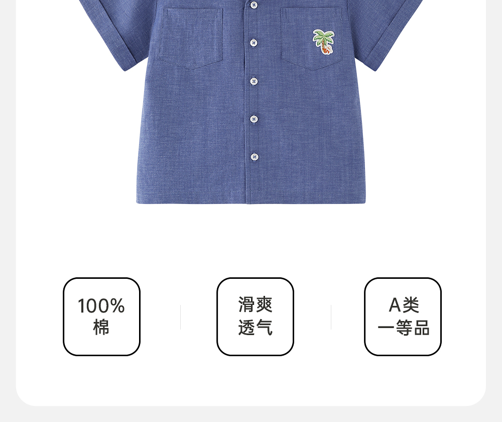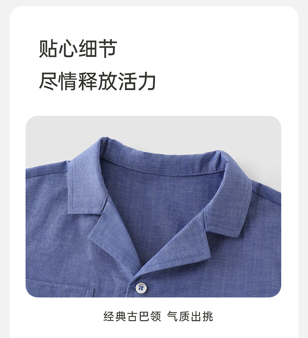 英氏儿童衬衫夏季短袖透气男童休闲上衣衬衫2025新款YRCCJ2R026A