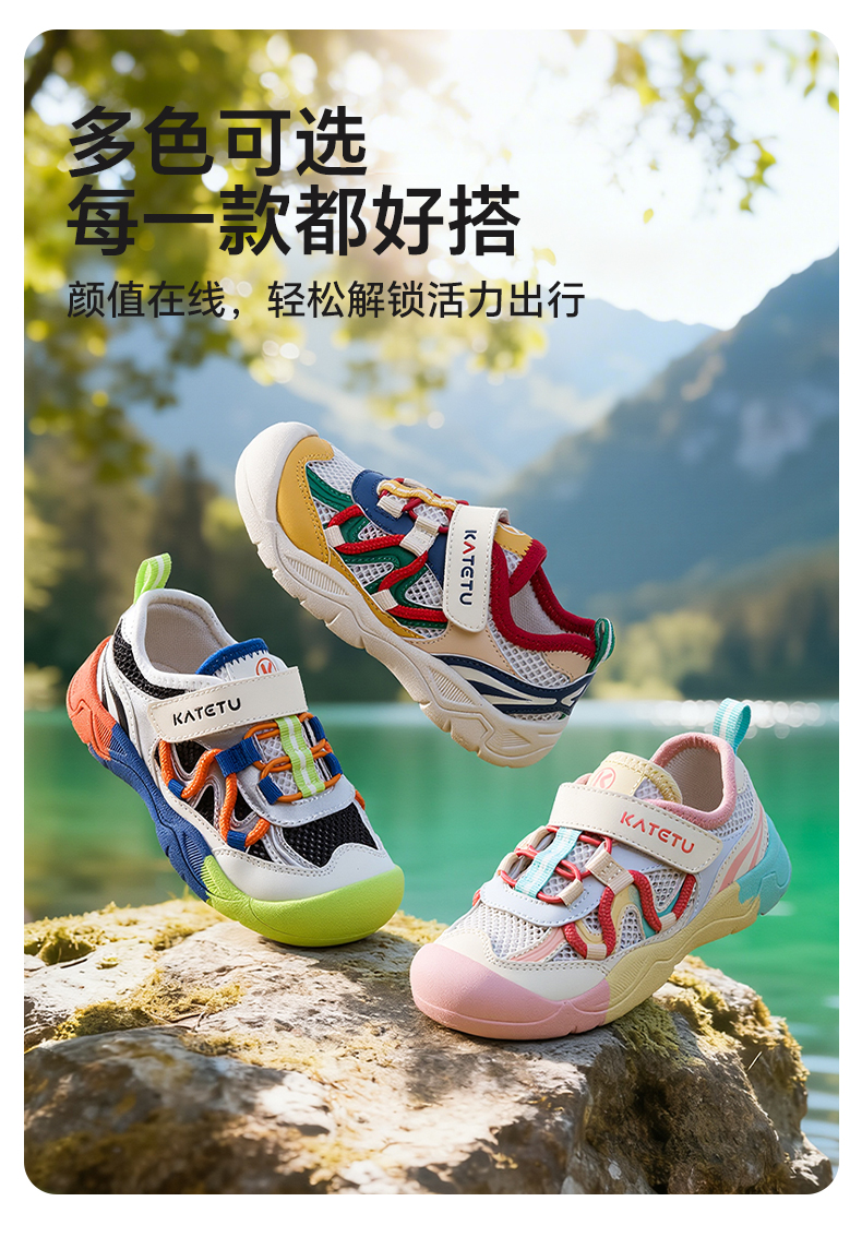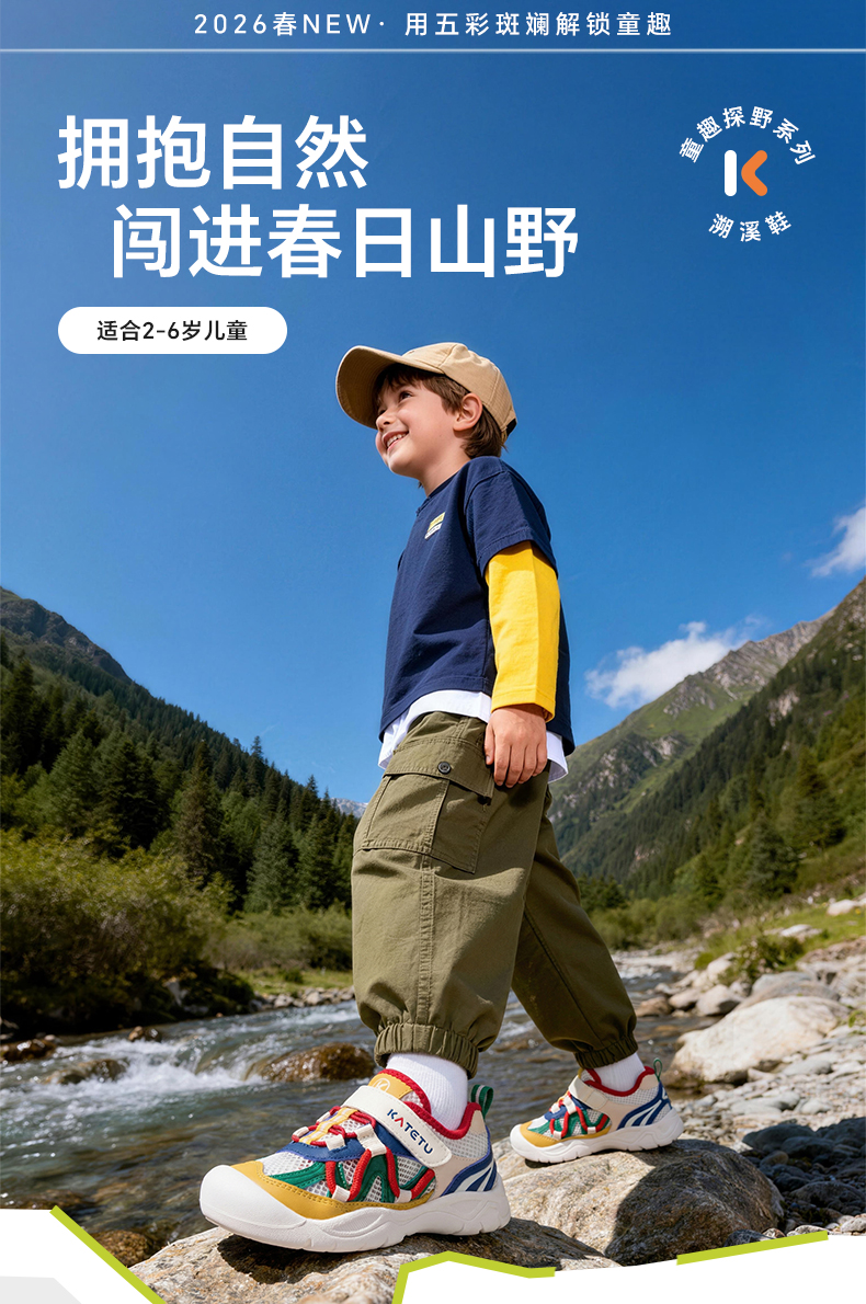 卡特兔童鞋户外儿童运动鞋2026年春季新品防滑网眼透气徒步登山鞋
