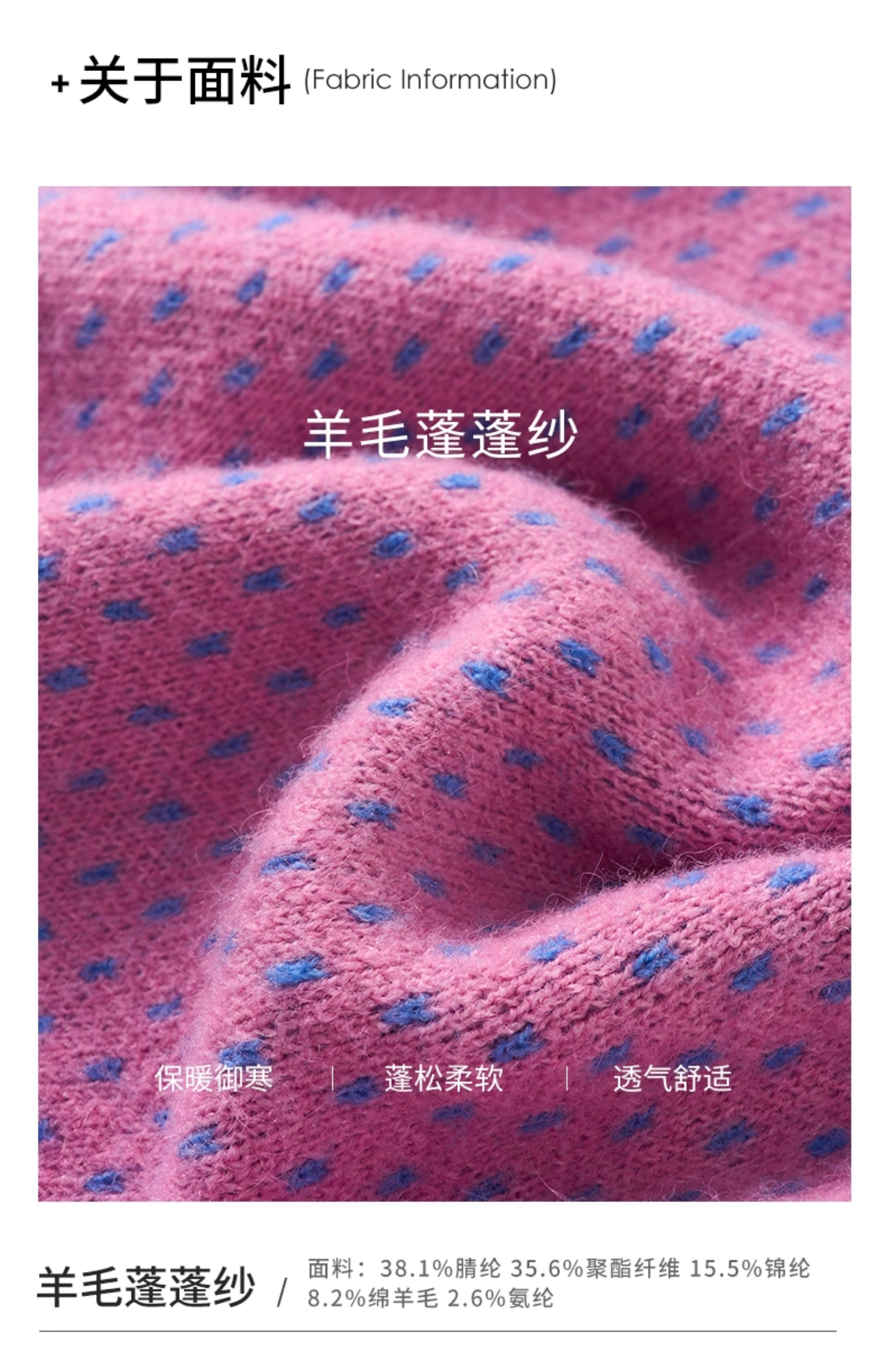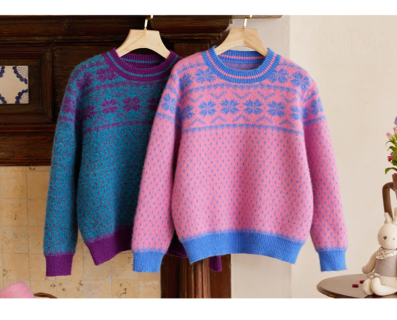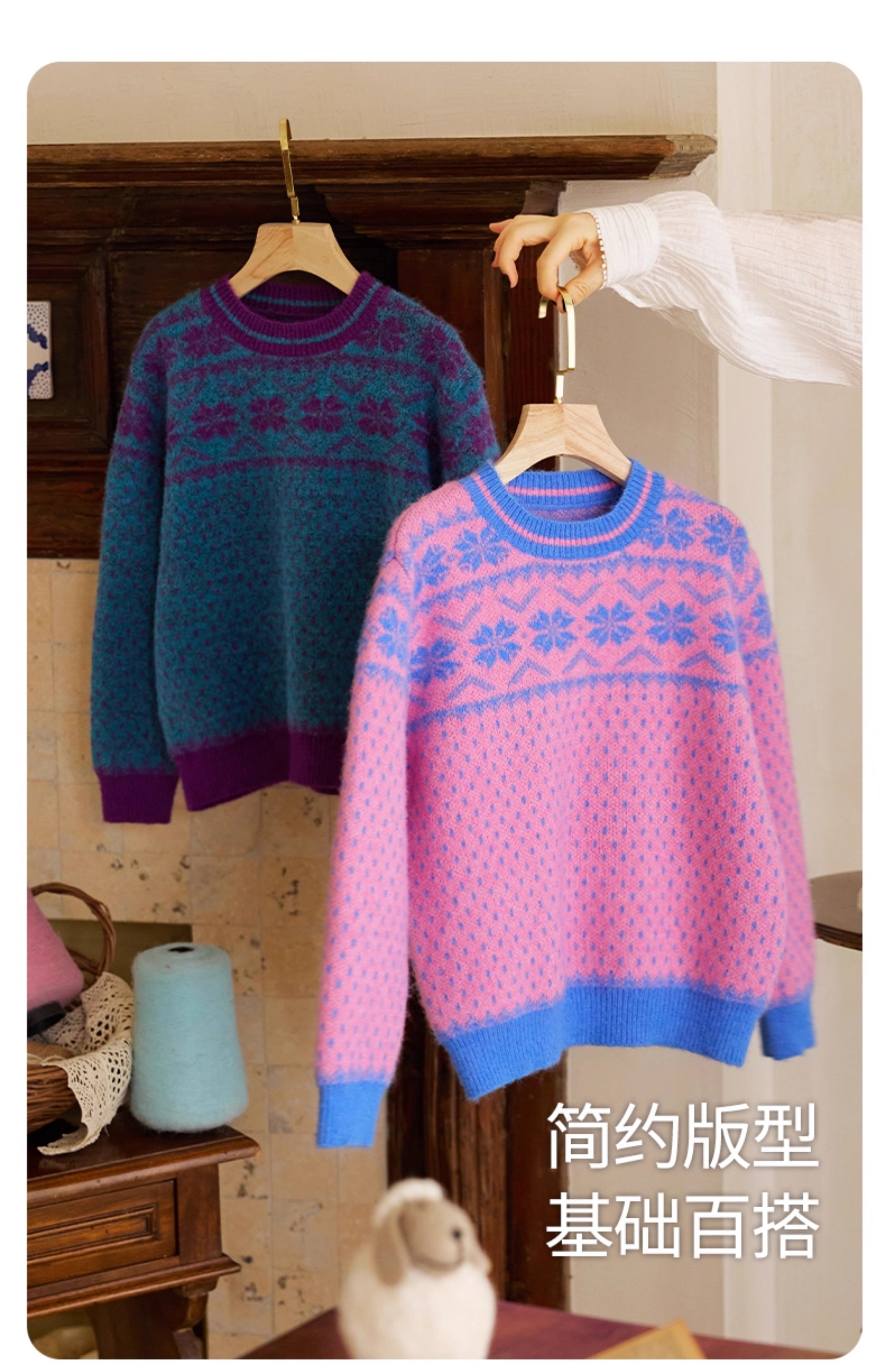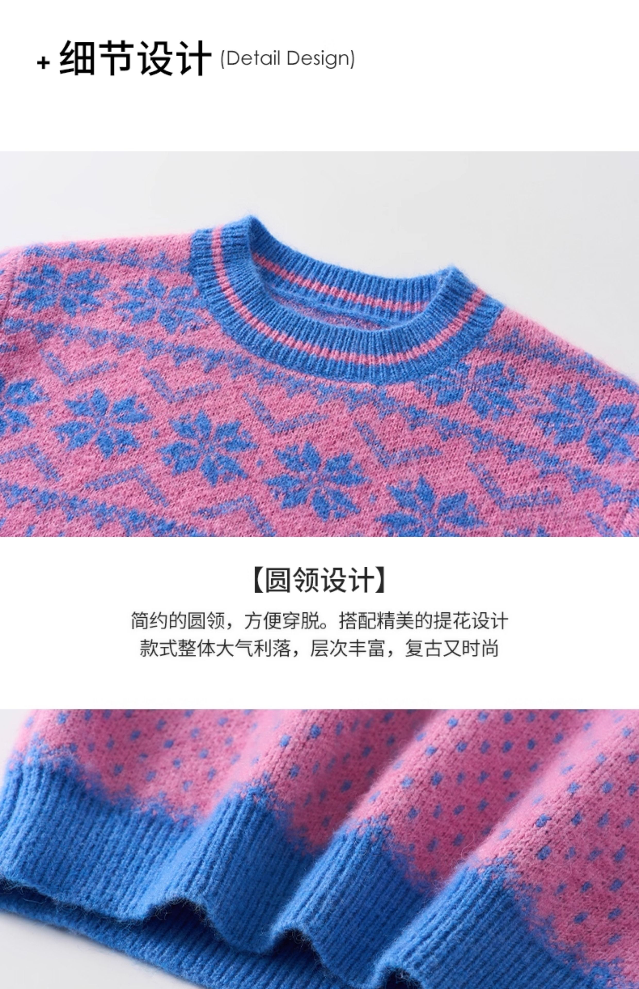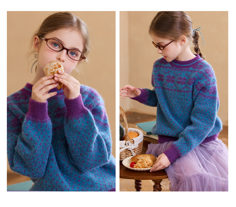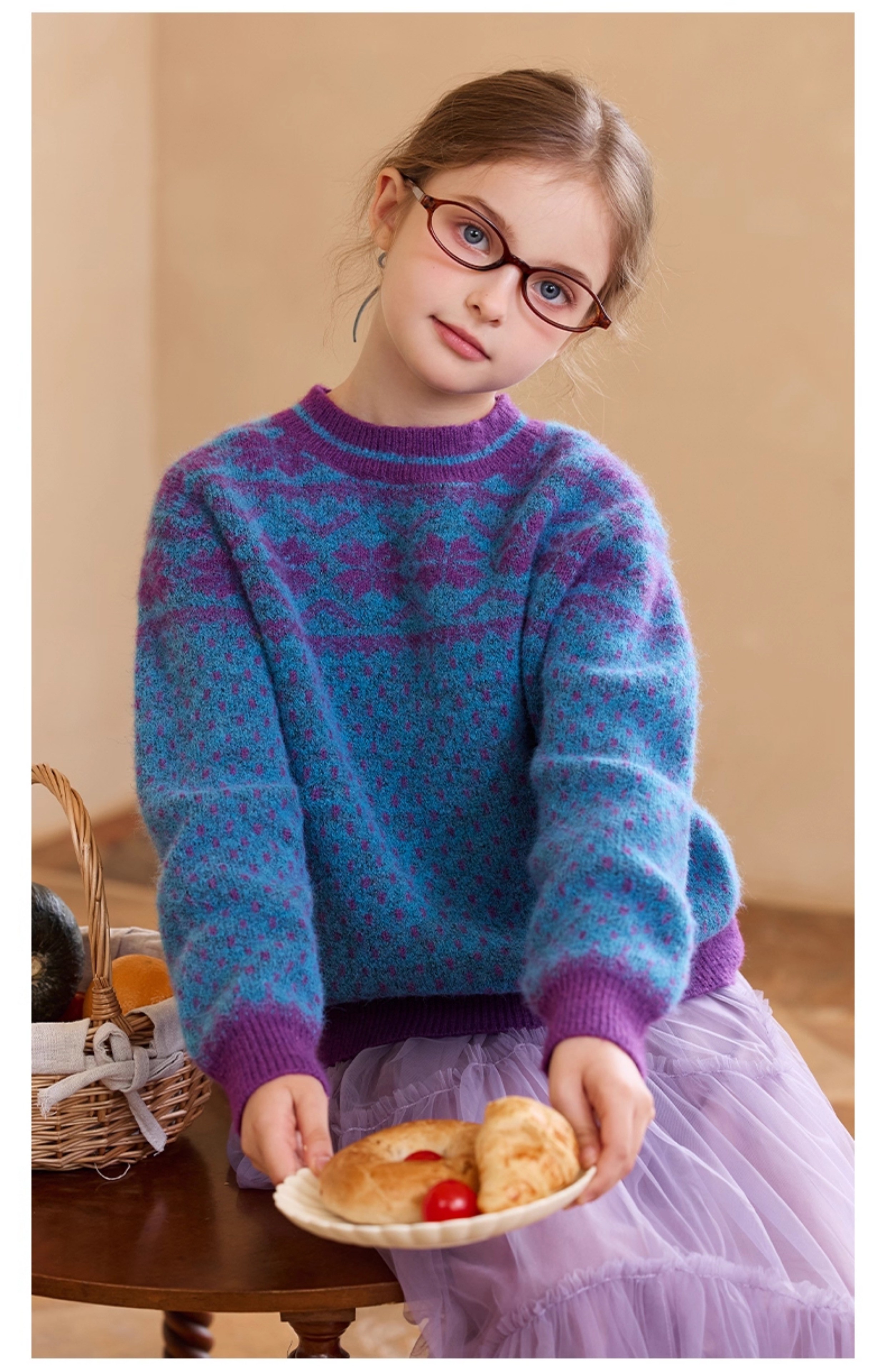 【云优选】Little Naive女童复古毛衣秋季新款撞色提花上衣儿童百搭套头毛衣