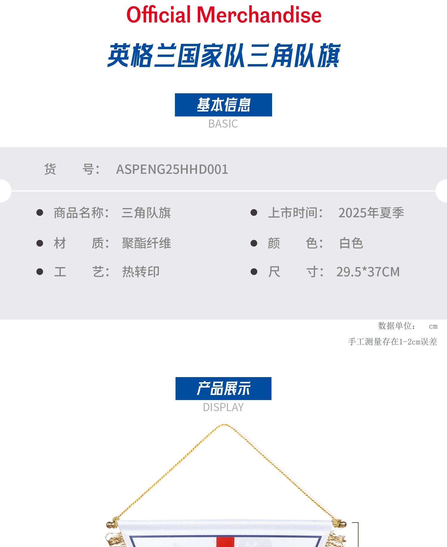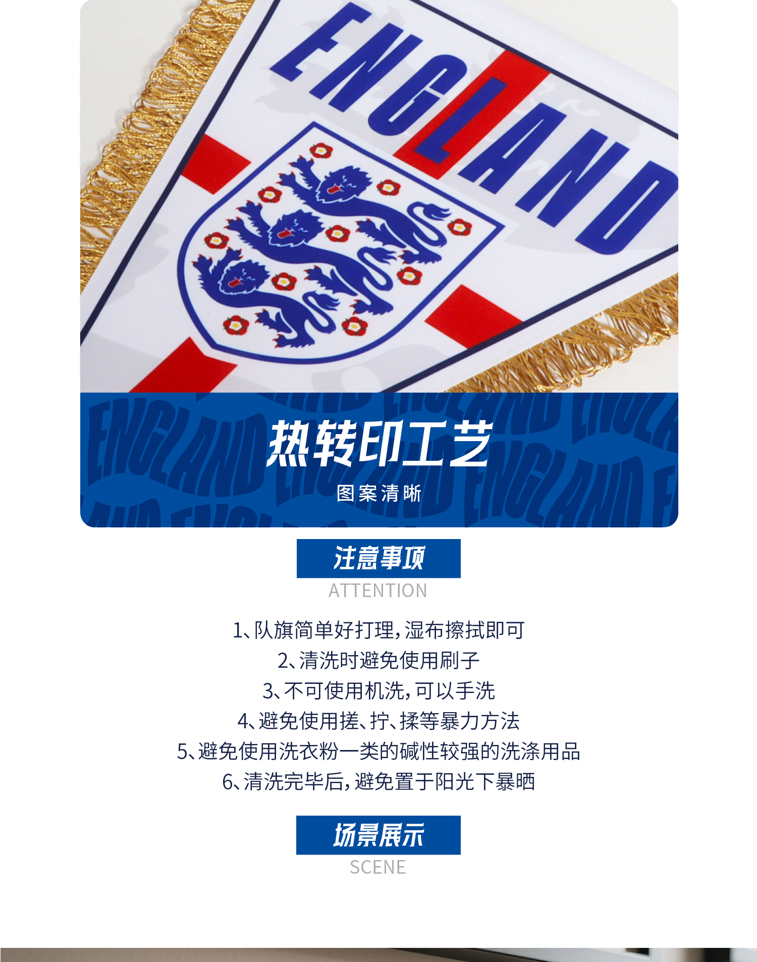 【官方正版】英格兰国 家队 | 三角队旗双面队徽款球迷周边