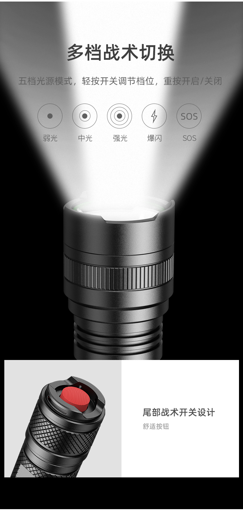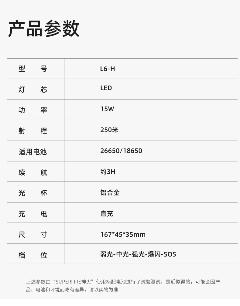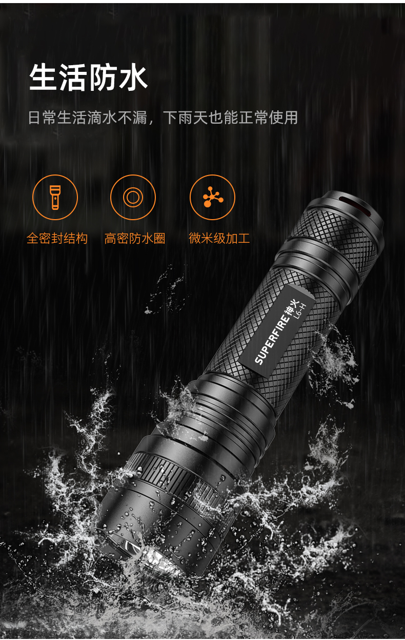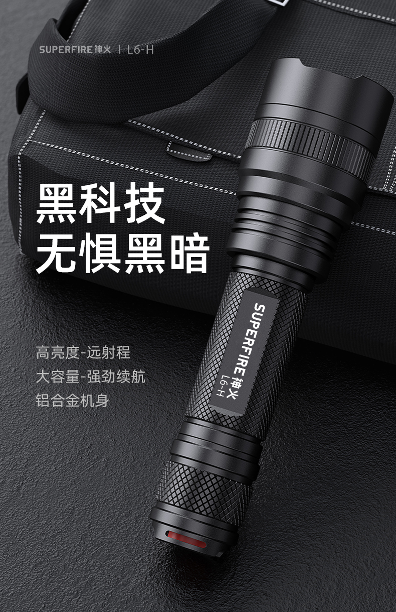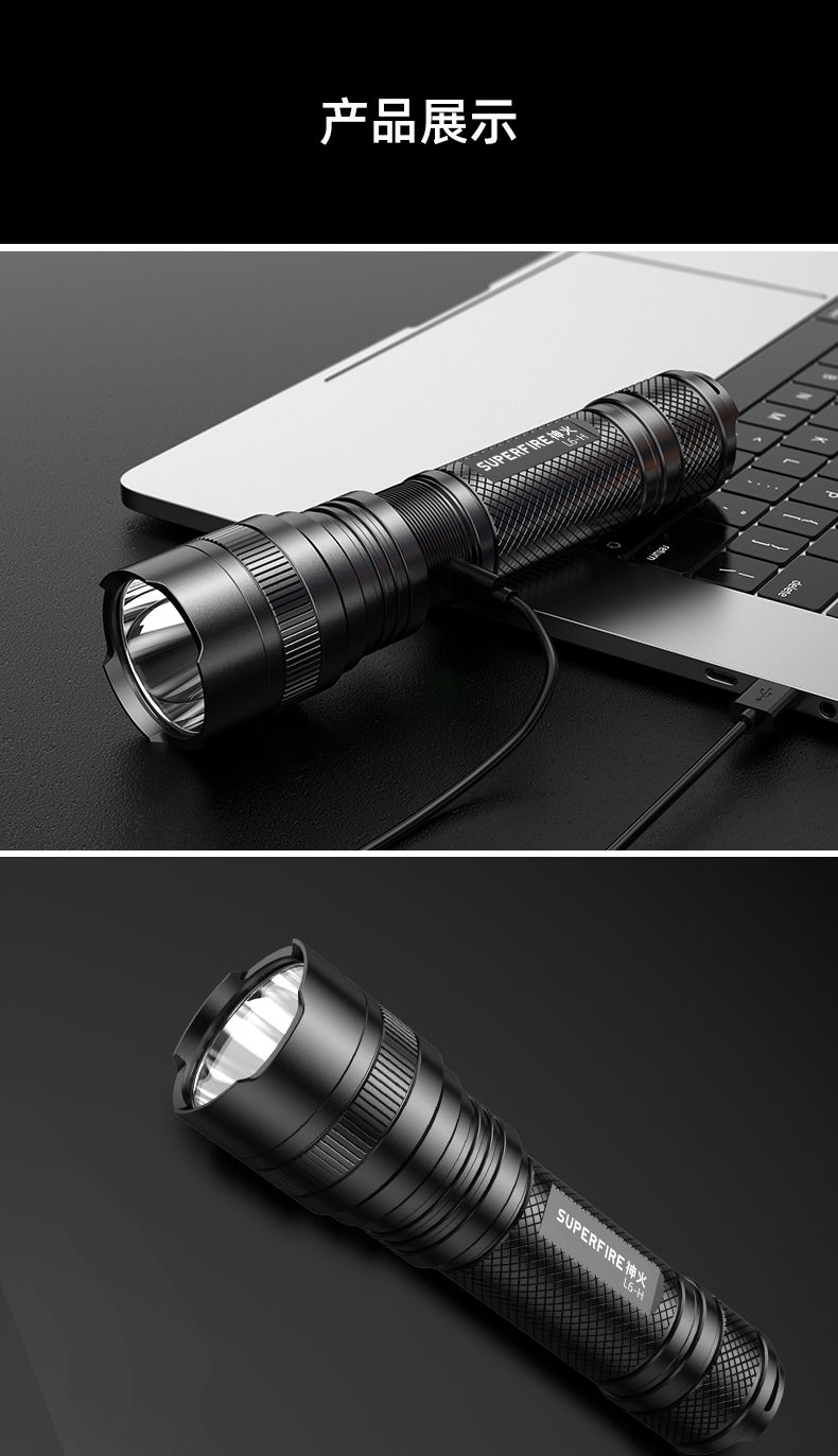 SUPERFIRE神火L6-H手电筒强光远射USB直充长续航家用户外超亮手电