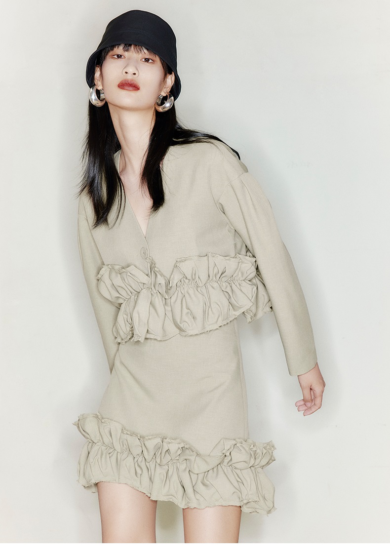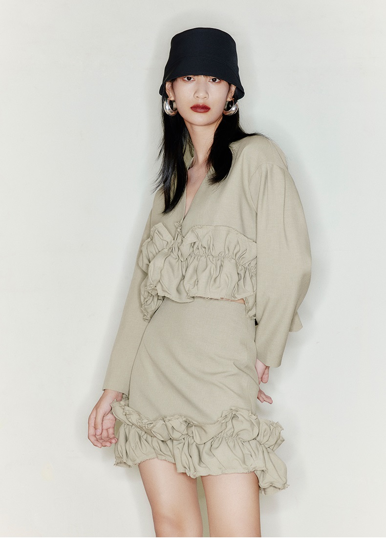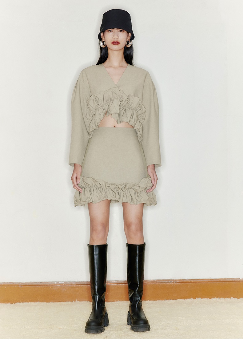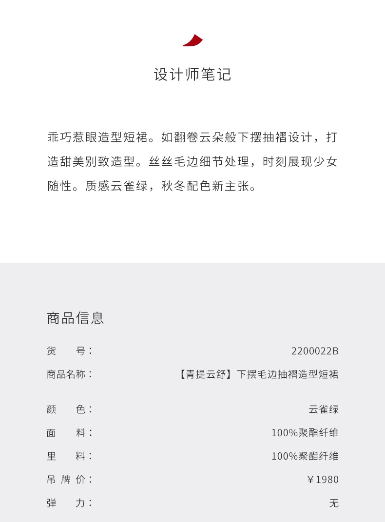 【青提云舒】下摆毛边抽褶造型短裙/2200022B