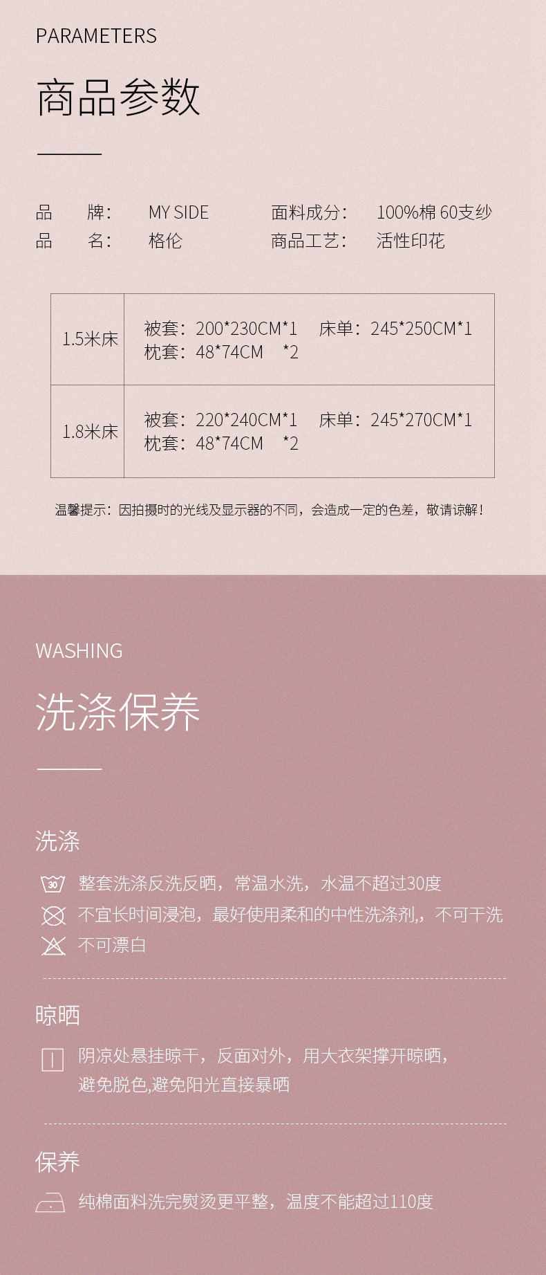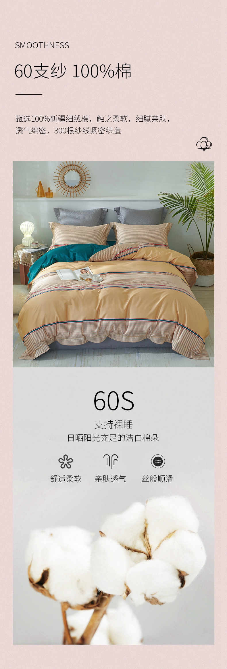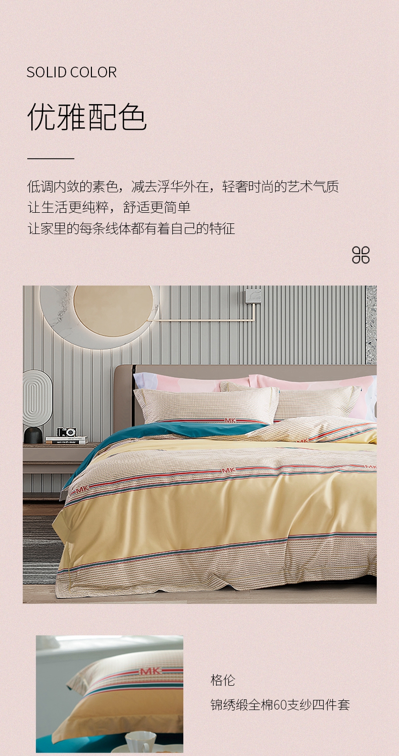春夏新品锦绣缎全棉60支纱四件套 简约被套床单4件套-格伦