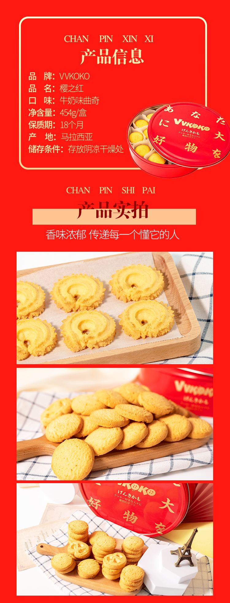 马来西亚VVKOKO樱之红牛奶味曲奇饼干454g/051627 香酥松脆轻咬一口满口甜蜜