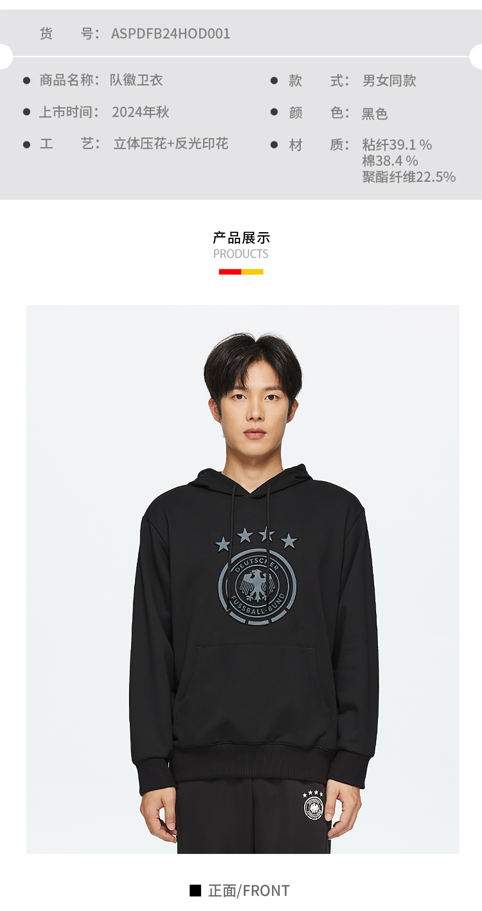 【官方正版】德国国家队 | 黑色队徽连帽卫衣运动服logo休闲简约时尚