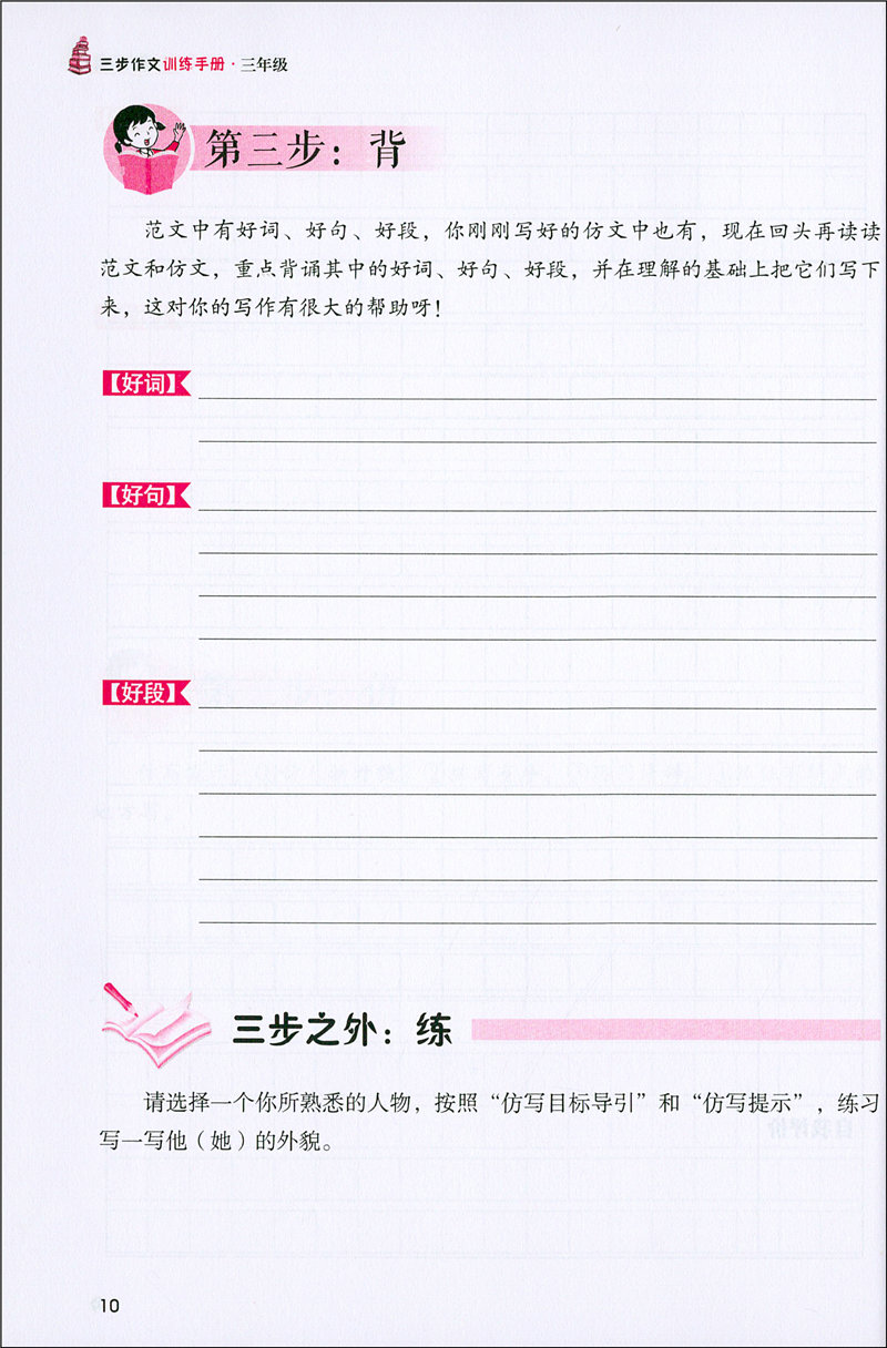 钟书正版名师特训三步作文训练手册3年级/三年级全一册修订升级版部编版语文教材编写27天写作计划三步作文系列小学语文教辅教材