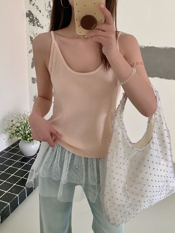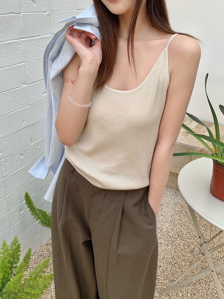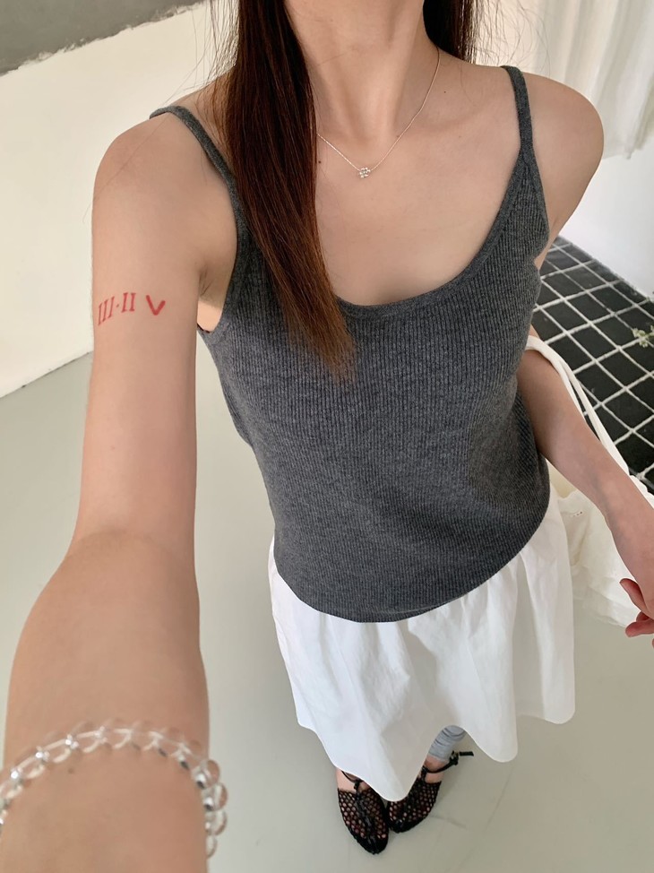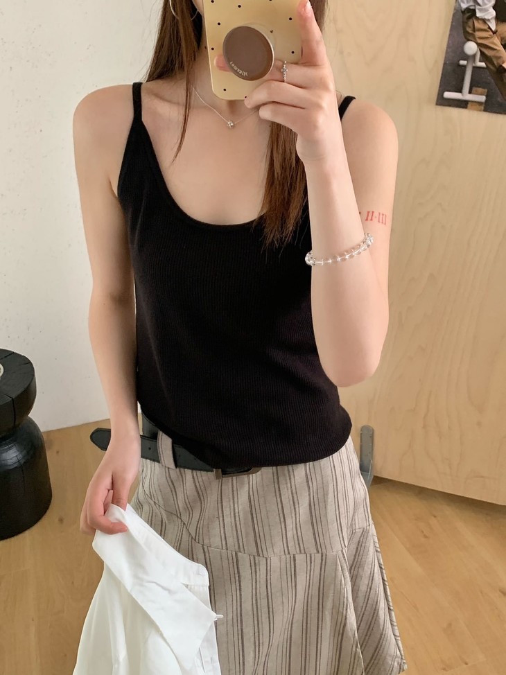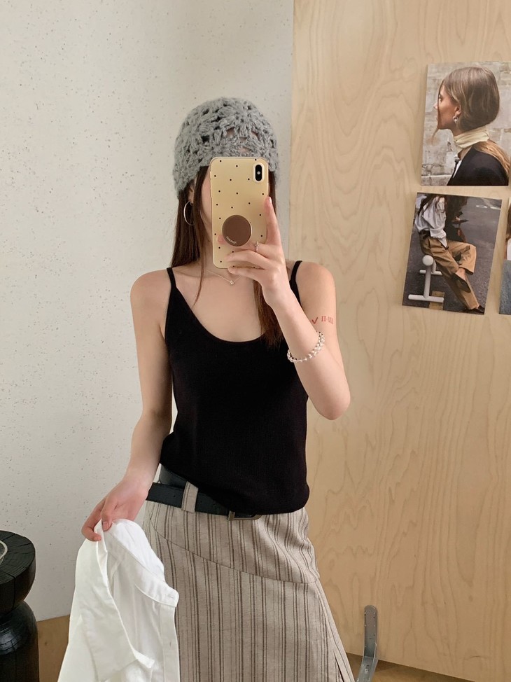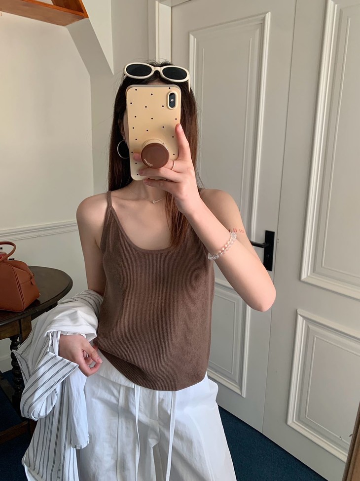 ✅32.1%绵羊毛:上手那个软糯感骗不了人, 贴身穿完全不扎,透气性好,春夏穿不闷汗。 配合锦纶和腈纶,抗起球且回弹好,久穿不易变形。 ✅ 软糯亲肤针织吊带,贴合身形不紧绷 细腻织面质感在线,单穿内搭都出彩 修身剪裁修饰肩颈线条,日常百搭不挑人 简约基础款,轻松拿捏温柔氛围感 修饰颈线显脸小,适宜长度不压个子,日常通勤、约会出游都合适