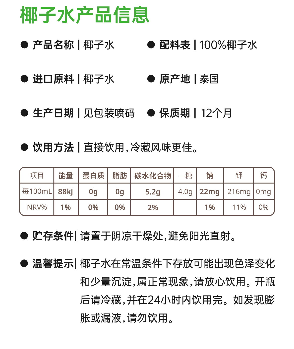 自然原味·你好椰椰子水 2小时灌装 不添加只有椰子水