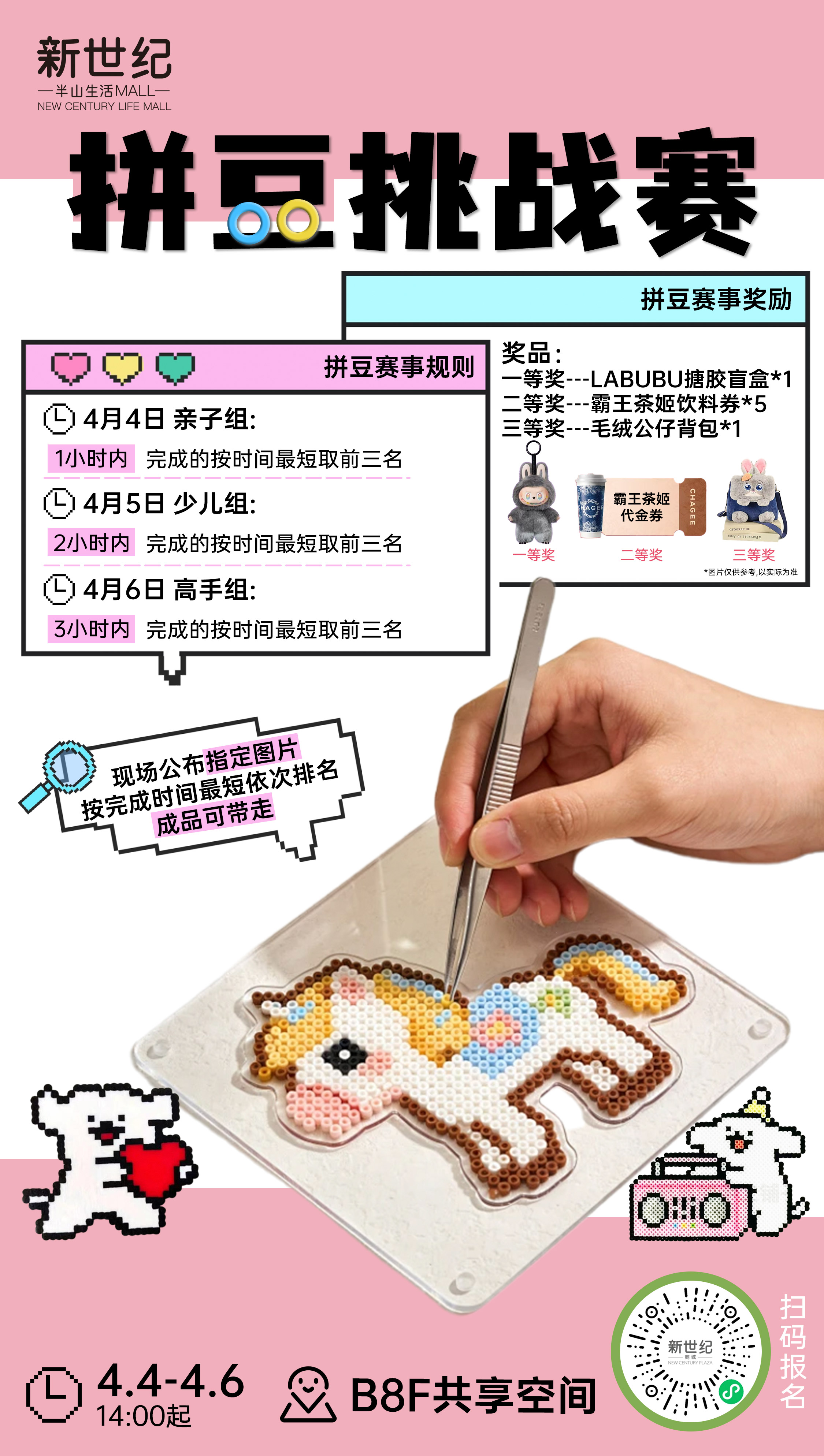 1、拼豆所有工具均由主办方提供,成品可带走;