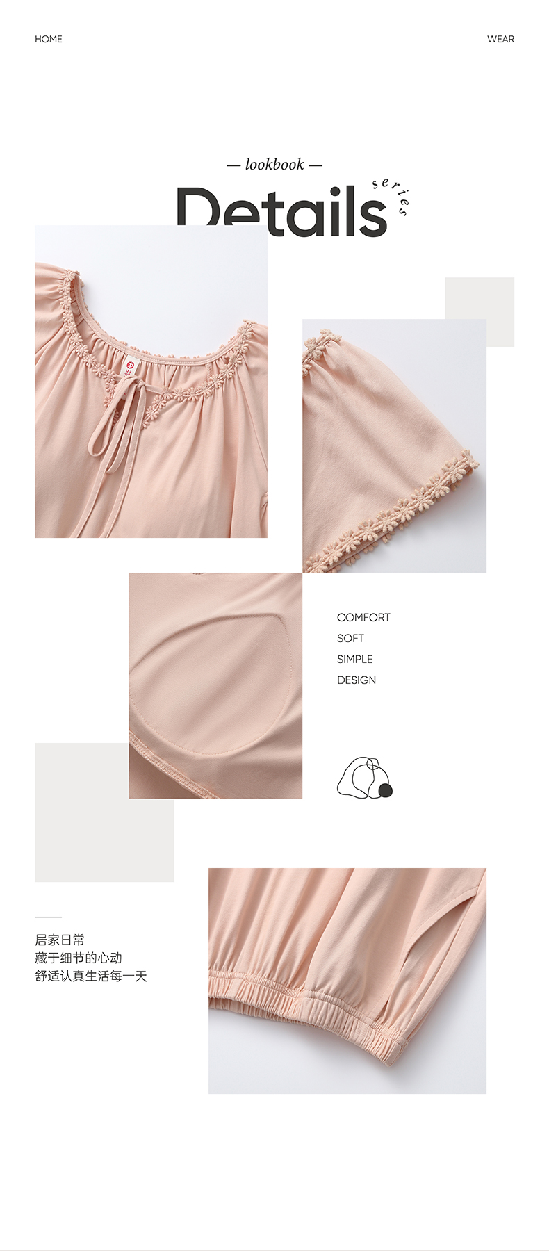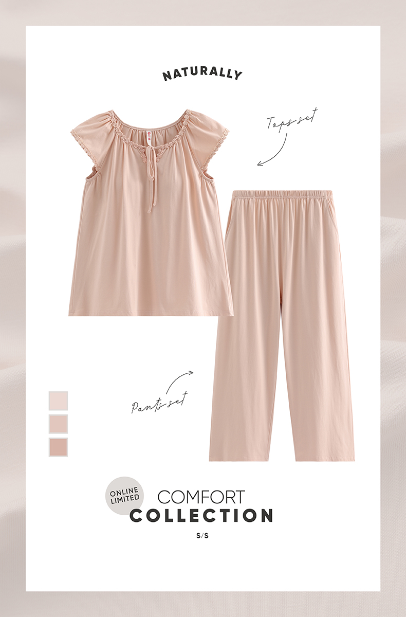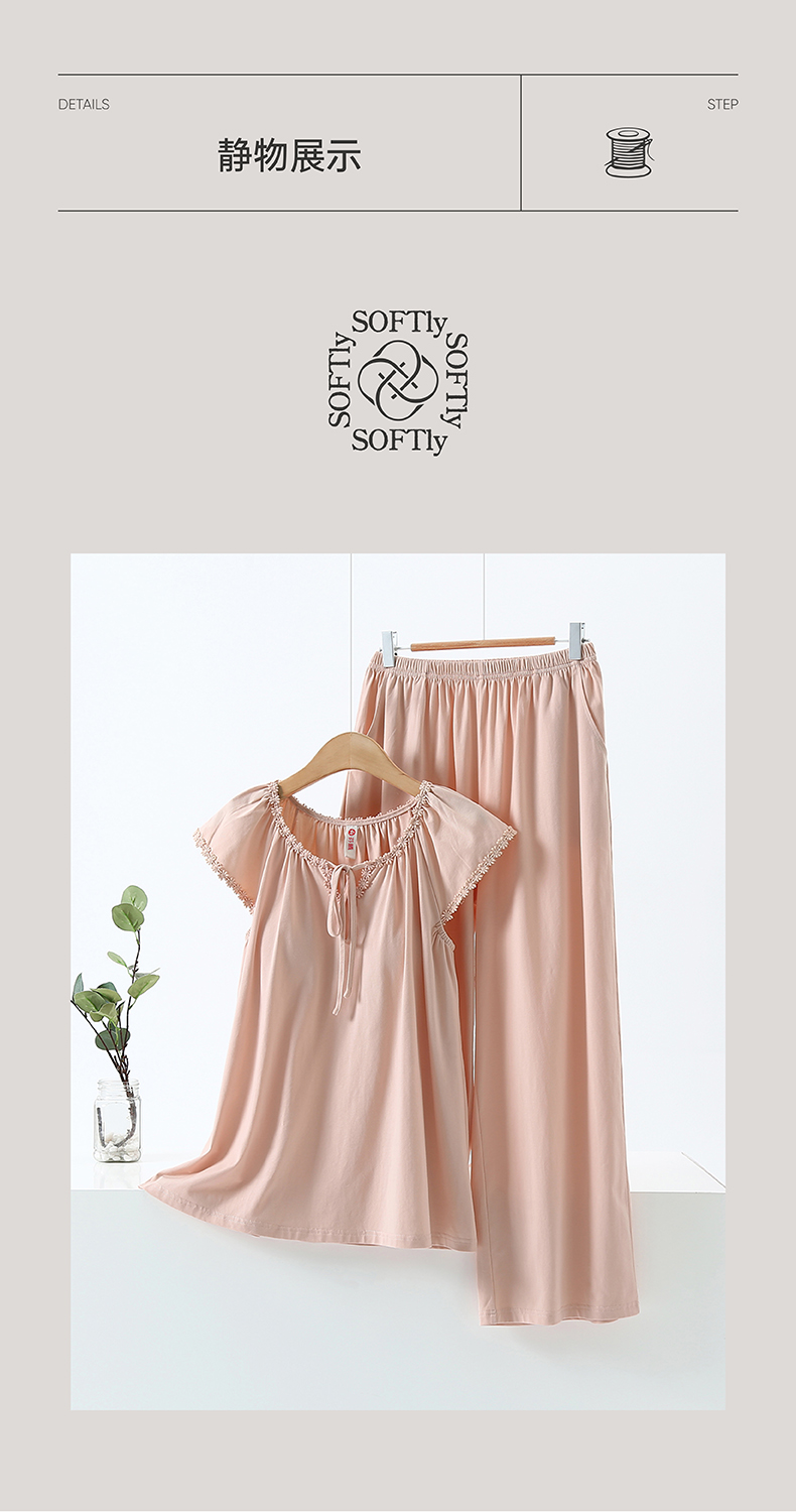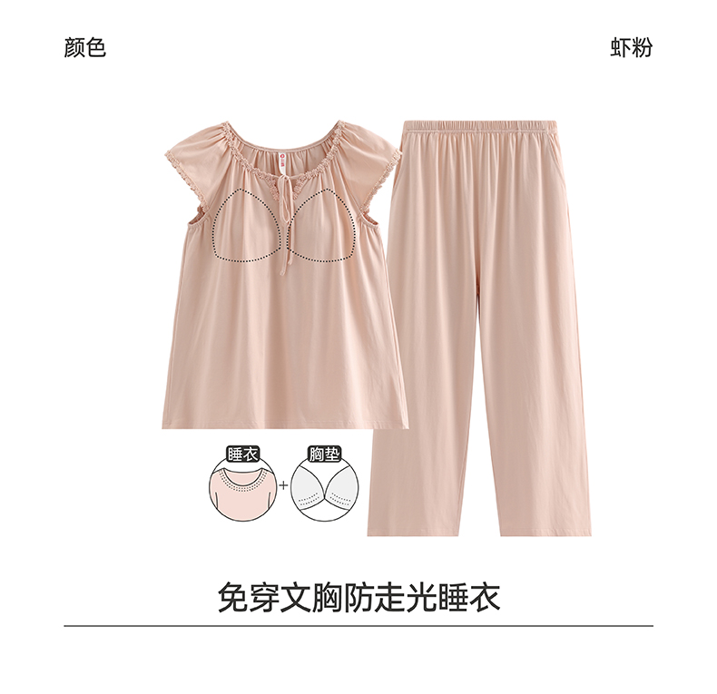 芬腾【带胸垫】夏季短袖长裤纯棉家居服套装yc0209006