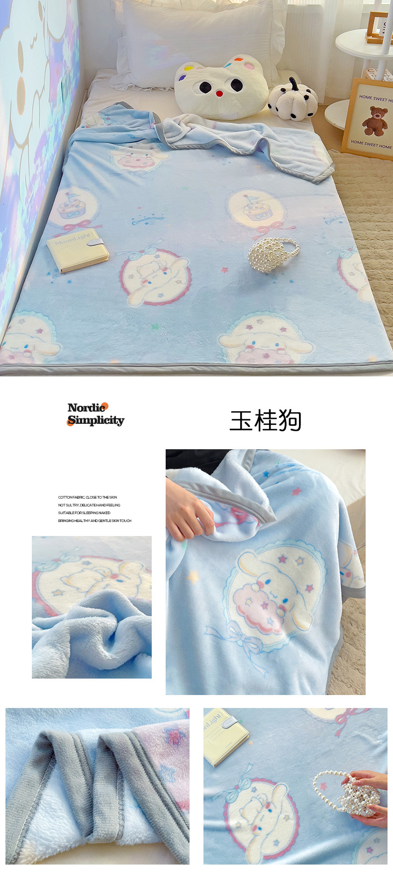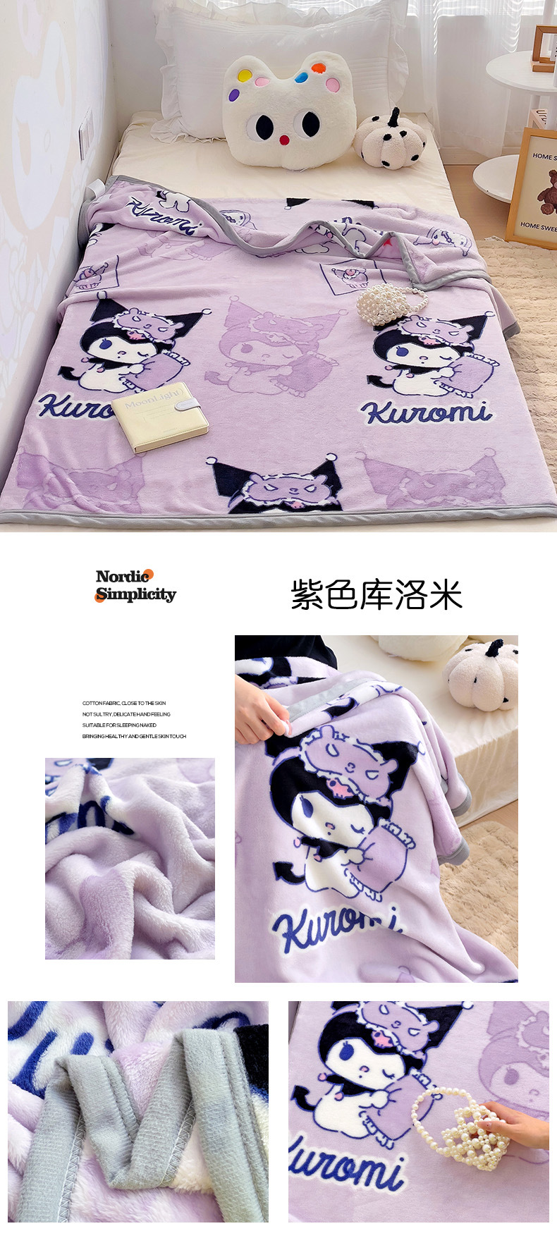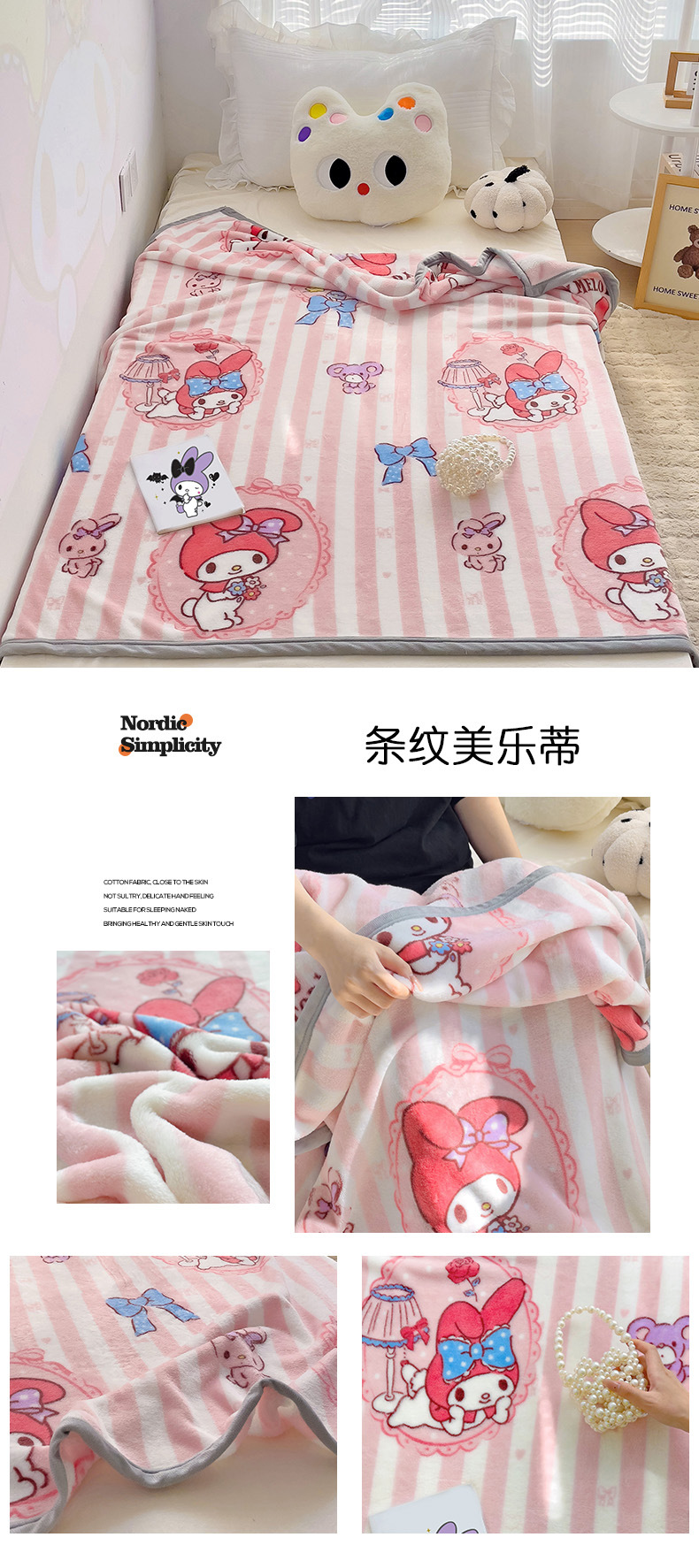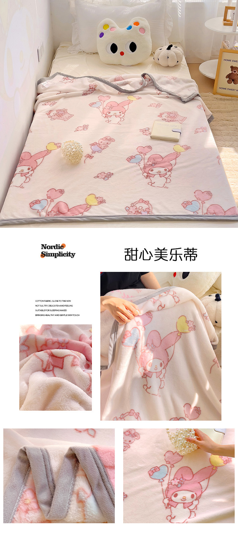 【三丽鸥家族】新款三丽鸥卡通A类双面牛奶绒儿童幼儿园小盖毯午睡四季空调毛毯子。ry