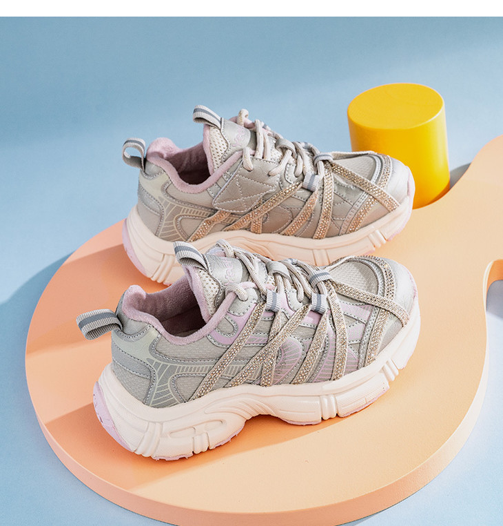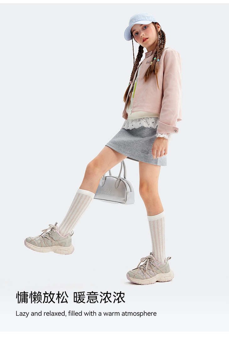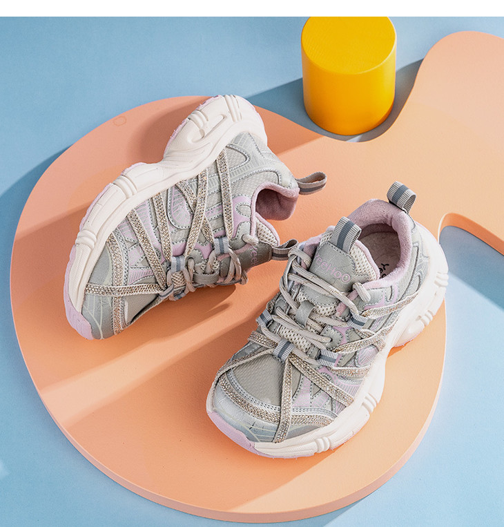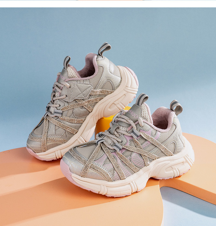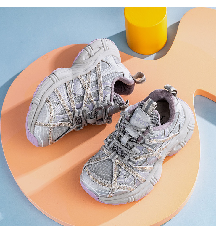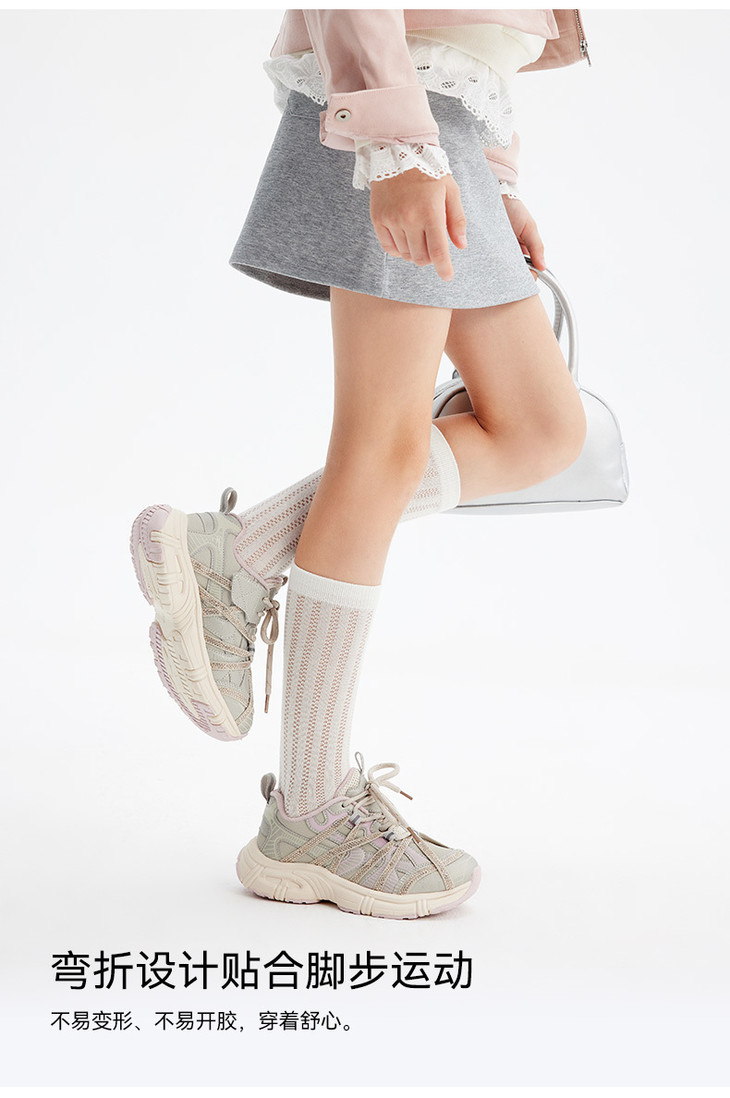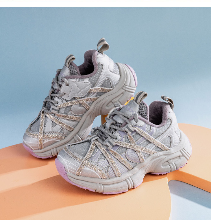 英氏YeeHo0童鞋冬季魔术贴运动鞋YHFEL2542301 货号:YHFEL2542301 颜色:米粉色、灰紫色 尺码:31-37 材质:鞋面 合成革;鞋底 EVA+TPR 这款运动鞋内部采用加厚毛绒内里,绒毛柔软细腻,能紧密贴合脚部,有效锁住热量,为孩子的双脚提供温暖呵护。 鞋底采用 EVA + TPR 材质,具有良好的弹性和柔韧性,能有效缓冲行走时的冲击力,减少对孩子脚部的伤害。 鞋身还设计有科学的弯折点,如 1/3 处弯折,符合人体工学原理,能让孩子的脚部自然弯曲,行走更加轻松舒适。 另外,鞋底的纹路设计合理,防滑性能出色,能让孩子在各种地面上都走得稳当。 鞋头部分一般采用了圆润包边或加固设计,能有效防止孩子在行走或奔跑时脚趾受到碰撞和挤压 这种设计不仅能保护孩子的脚趾安全,还能避免鞋子因频繁碰撞而损坏,延长鞋子的使用寿命。 后跟部分采用了加固设计,通常会内置硬质后跟杯,能为孩子的脚踝提供有力的支撑,有效固定脚踝位置,防止脚踝在运动中发生扭伤或变形。 同时,后跟处的材质也比较厚实,能减少鞋子对脚跟的摩擦,让孩子穿着更加舒适。