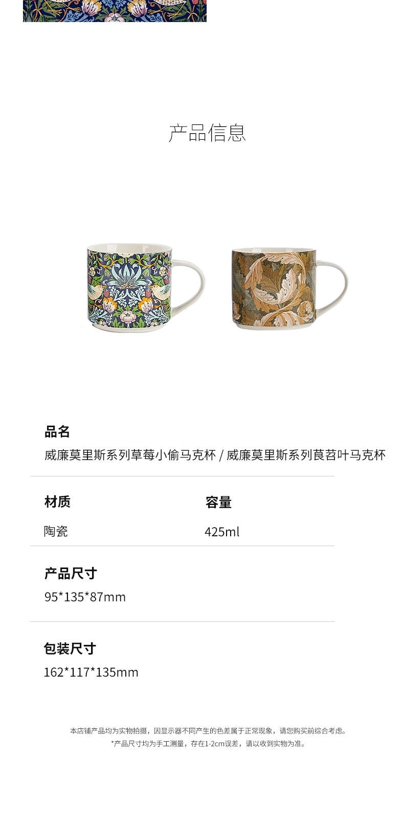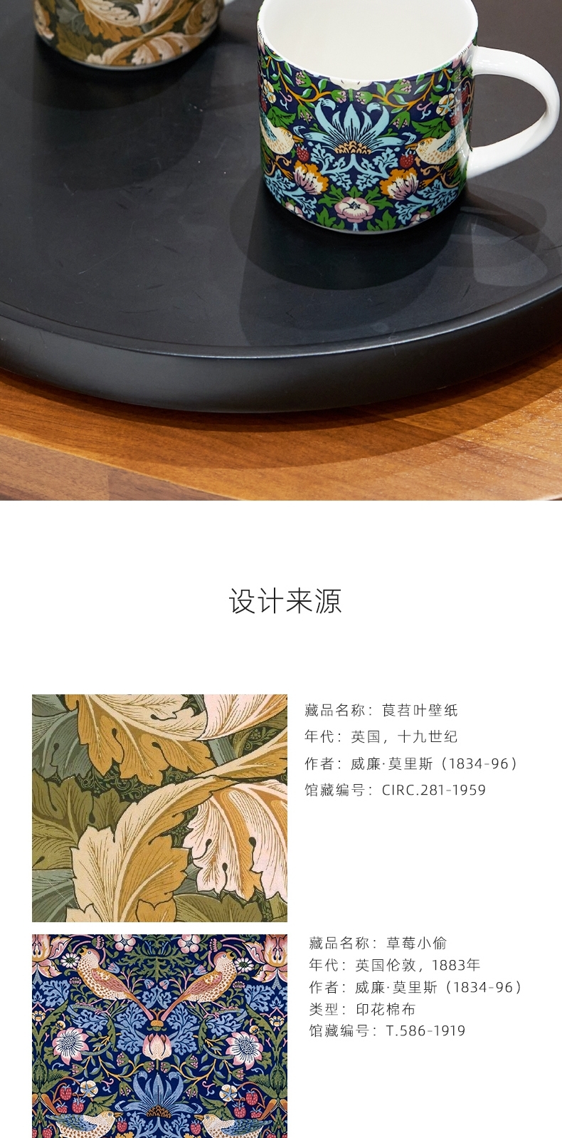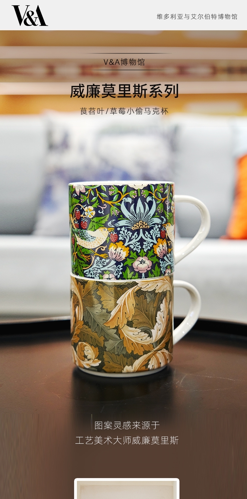 V&A博物馆威廉莫里斯系列 草莓小偷 茛苕叶陶瓷杯马克杯425ml