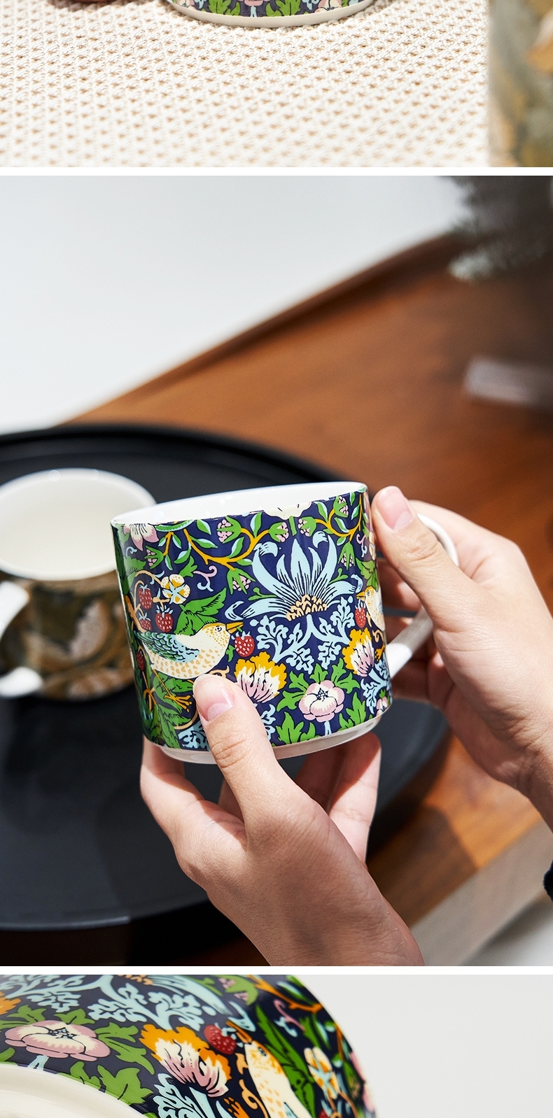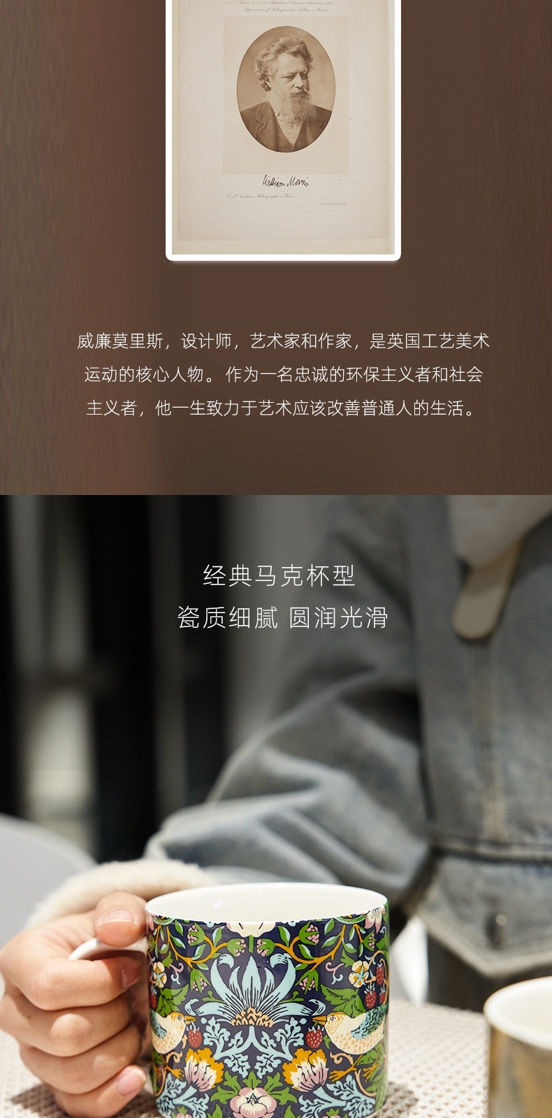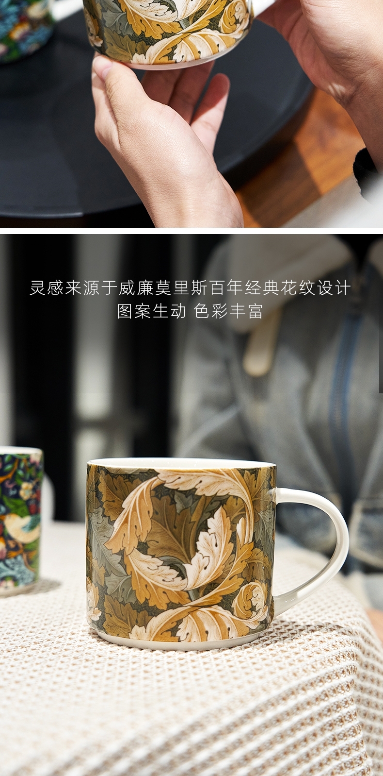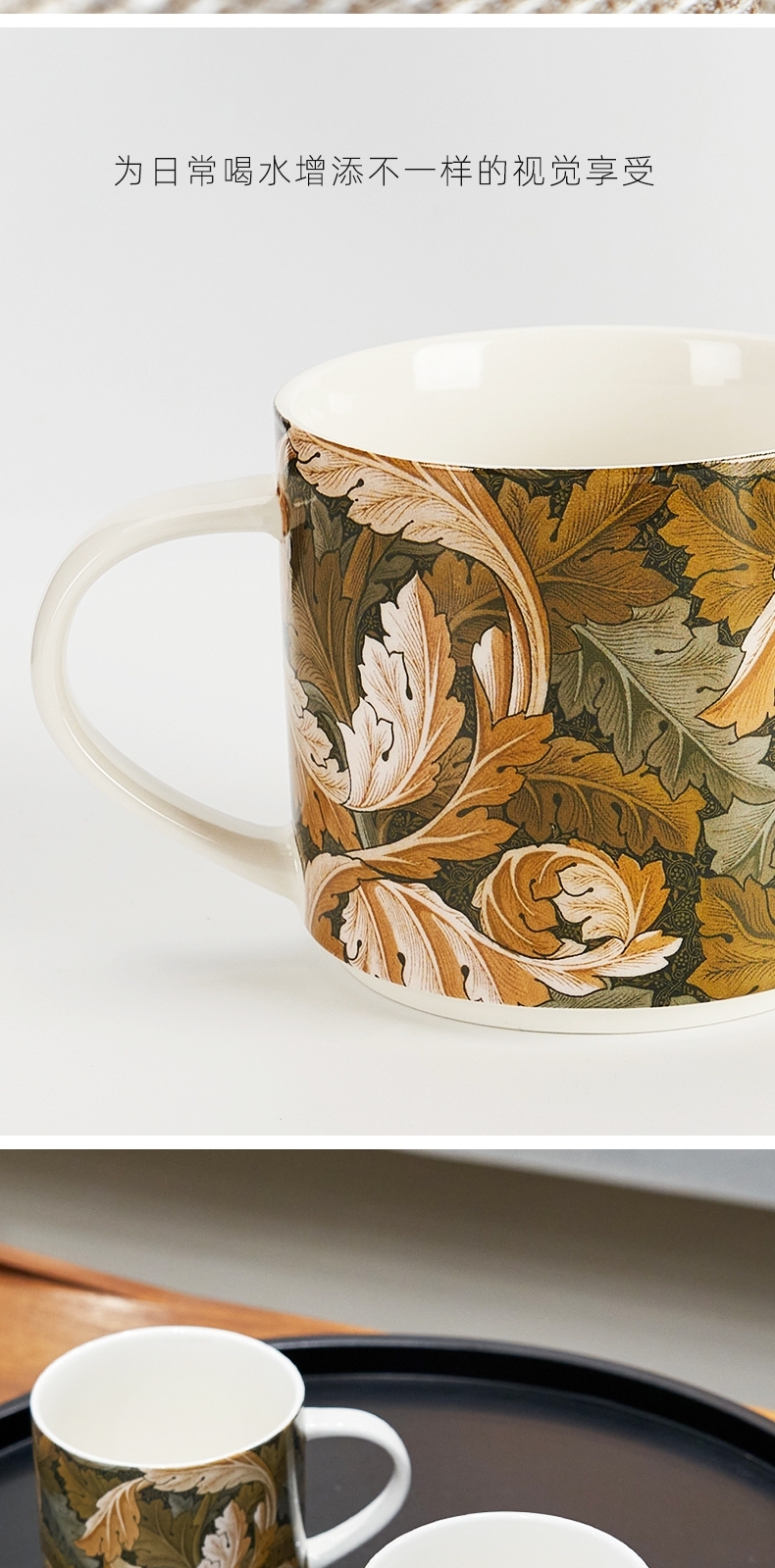 V&A博物馆威廉莫里斯系列 草莓小偷 茛苕叶陶瓷杯马克杯425ml