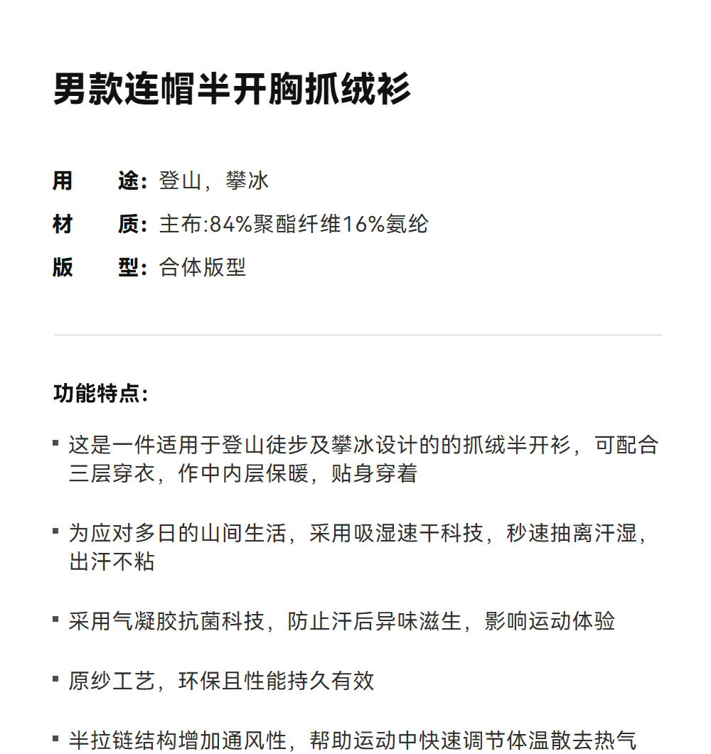 KAILAS凯乐石 户外运动 男款连帽半开胸抓绒衫 KG2437136【Z】