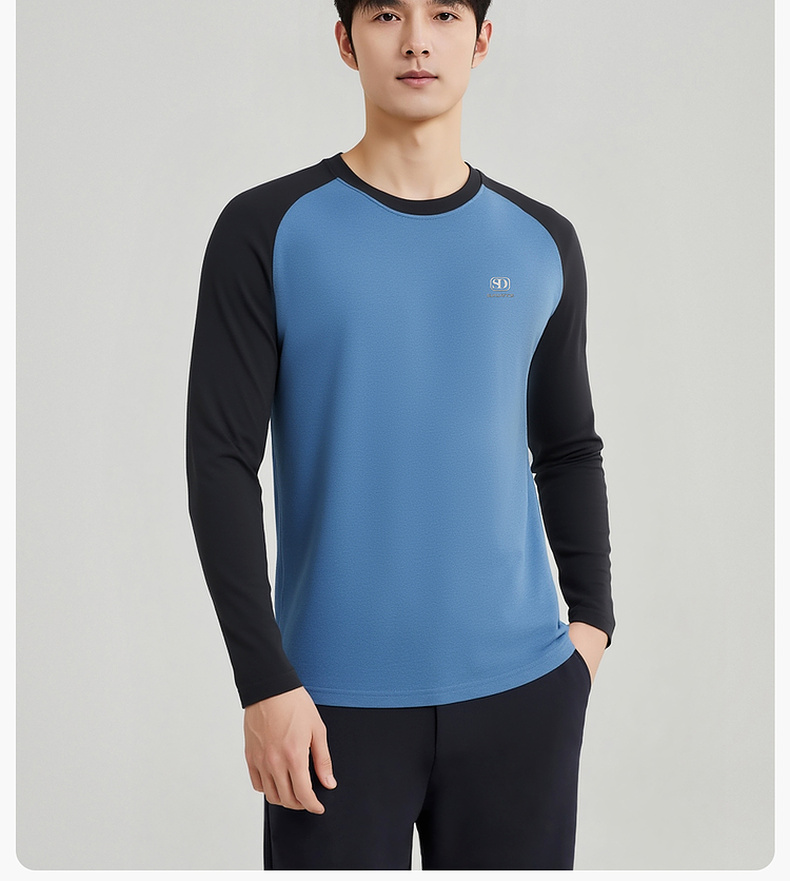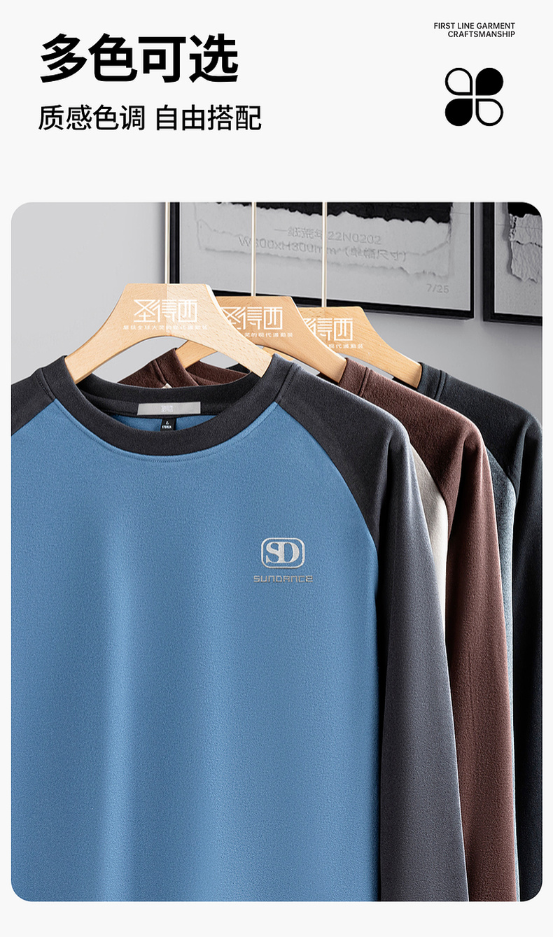 圣得西2025年秋季新款加绒加厚男假两件卫衣拼接撞色潮流百搭长袖
