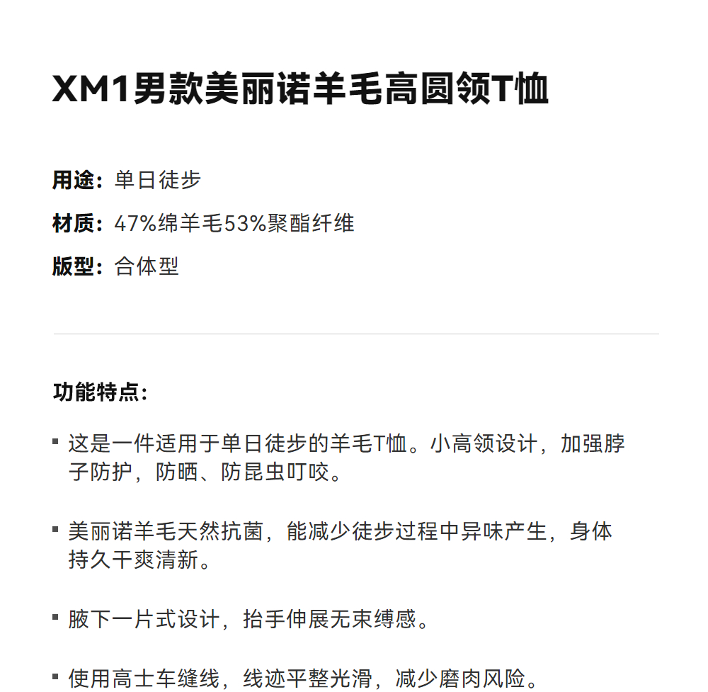 KAILAS凯乐石 XM1男款美丽诺羊毛高圆领T恤 KG2537197