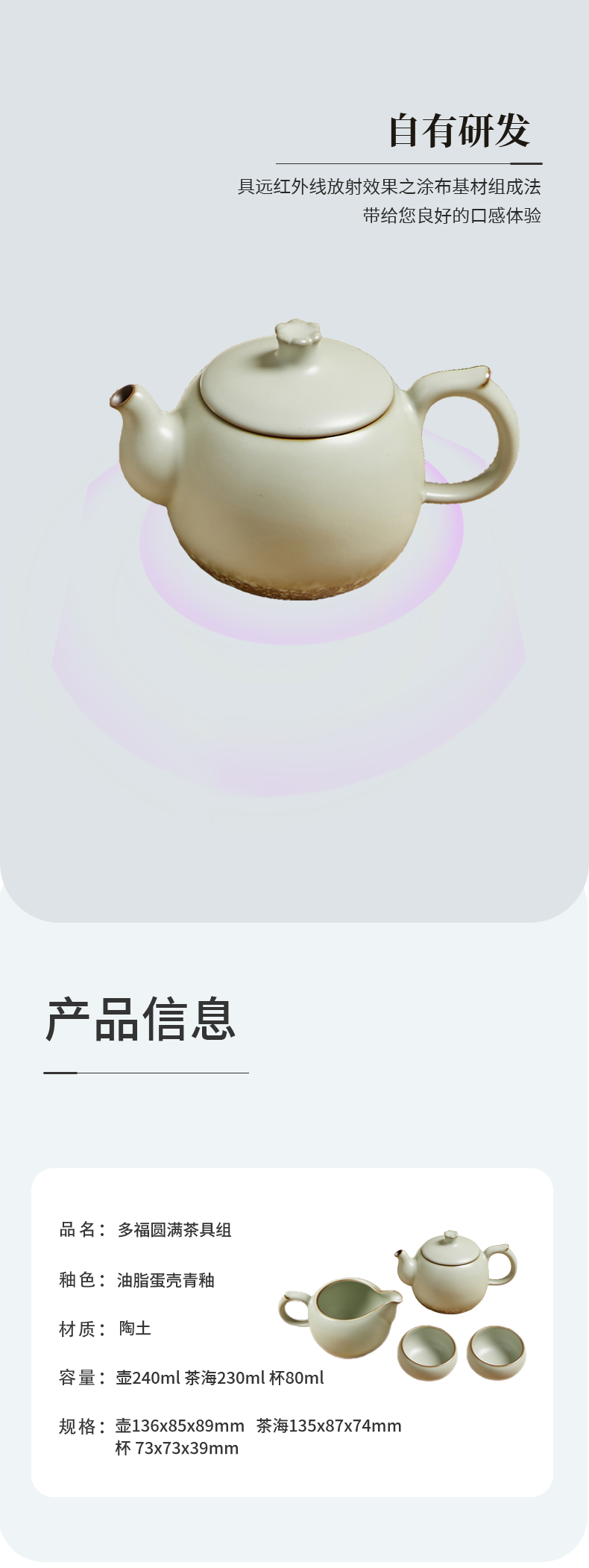 【活瓷陶器茶具】多福圆满茶具套装1壶6杯1茶海