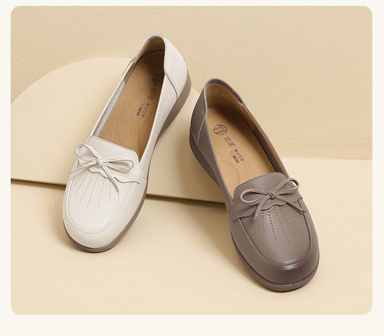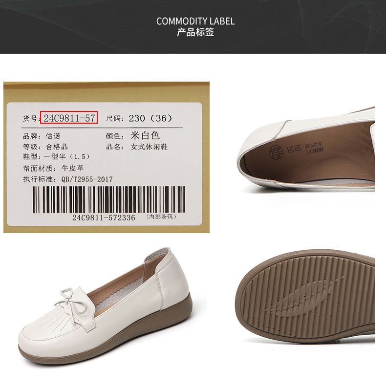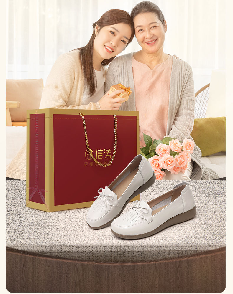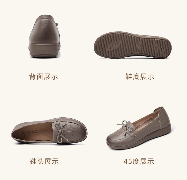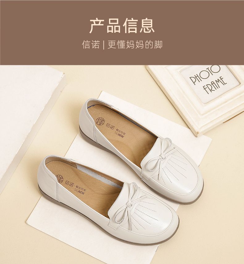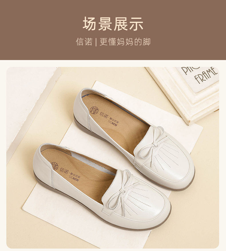 信诺真皮舒适妈妈鞋子女2024新款春季软底中老年皮鞋防滑软皮单鞋24C9811-57