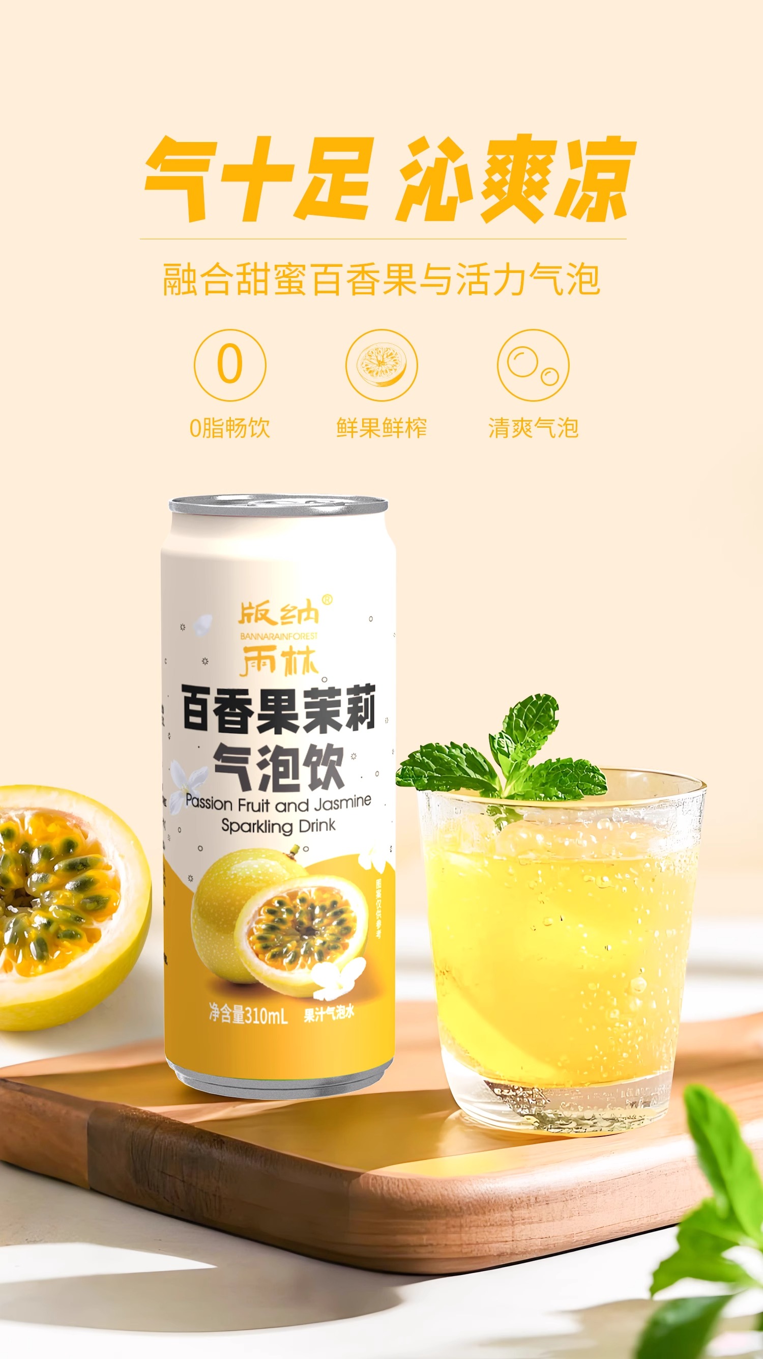 版纳雨林 百香果茉莉气泡饮 310ml*6