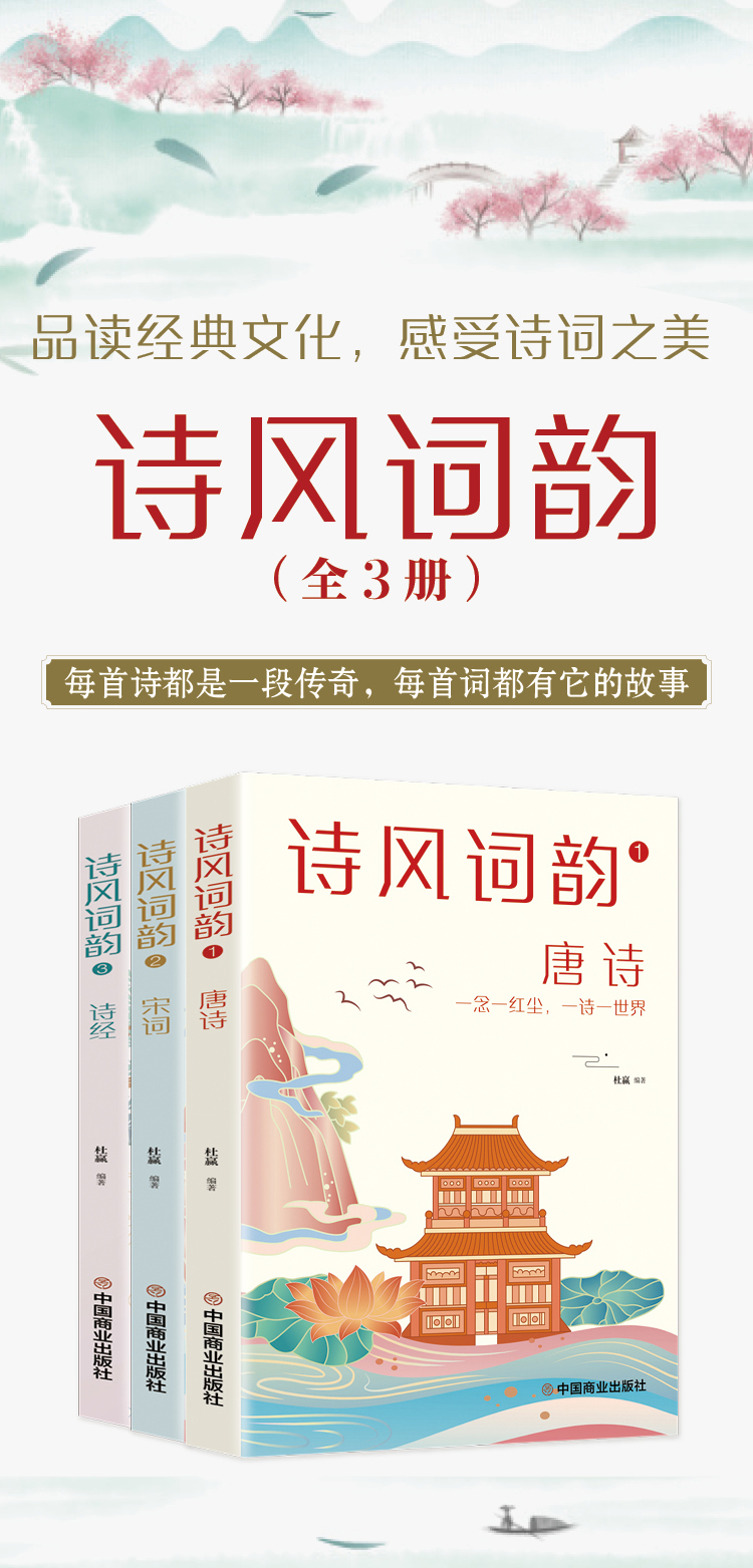 B110【9-15岁】中国孩子不可不读的诗风词韵:诗经+唐诗+宋词(全3册)