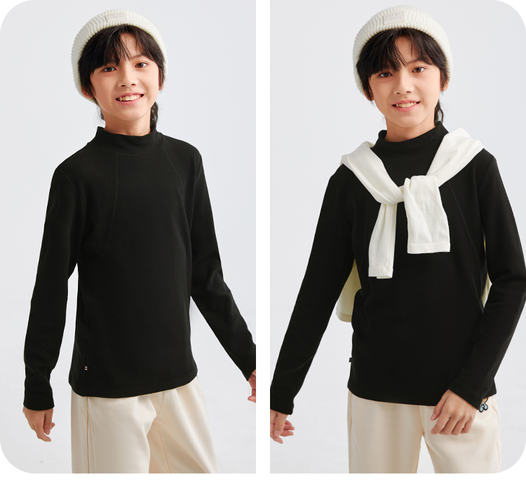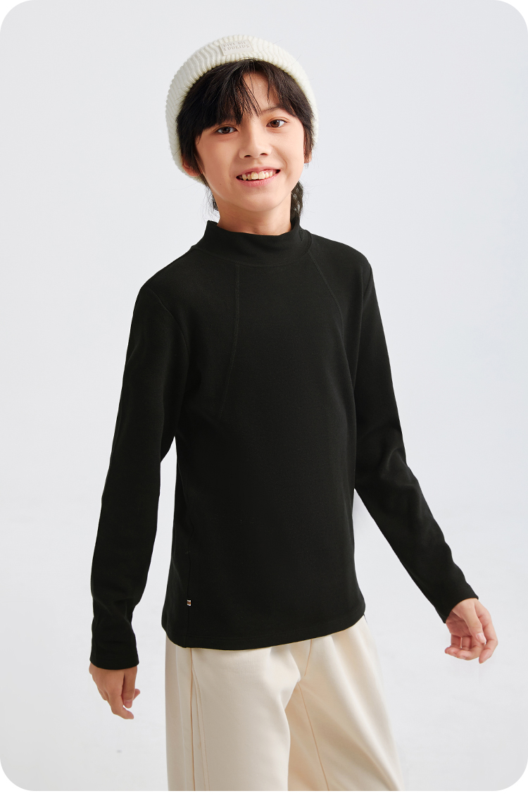 水孩儿童装秋冬新款儿童打底衫男童半高领德绒T恤女童纯色百搭上衣