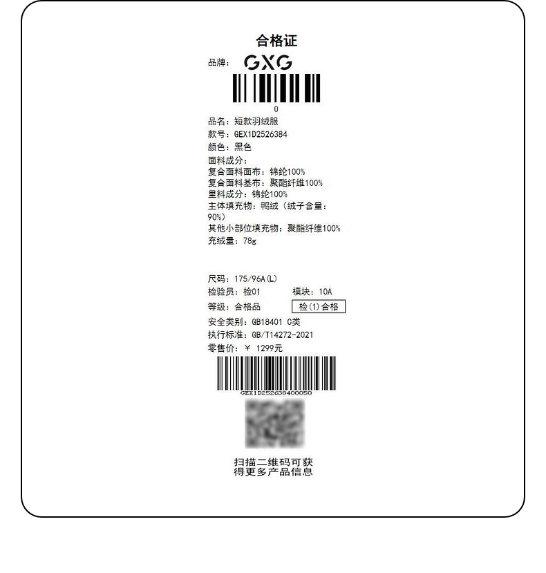 GXG男装 黑色轻便舒适羽绒服 冬季热卖羽绒服 GEX1D2526384