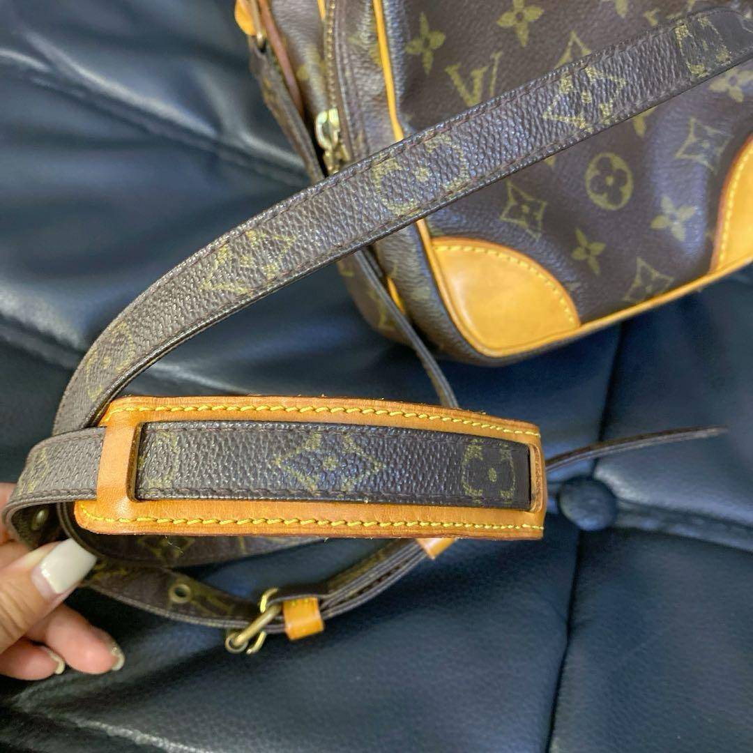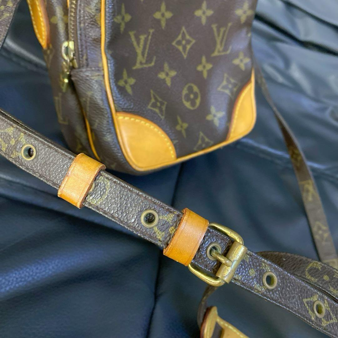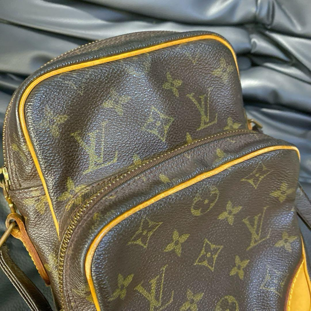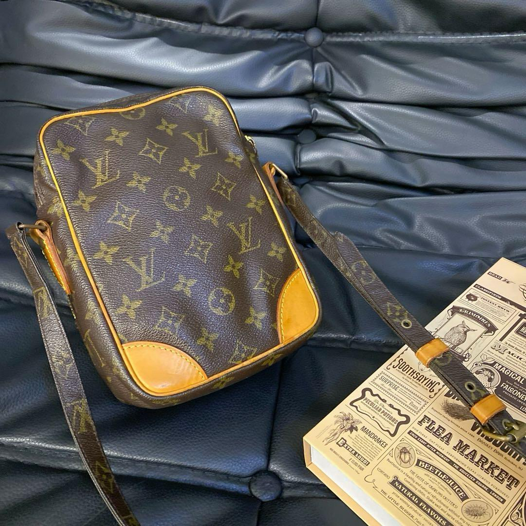 【商品詳情】正品二手 Lv 中古 老花 双层 相机包🍟 93新 15x20。植鞣革深棕色 包边有使用摩擦 肩带两侧植鞣革有使用变形。男女同款