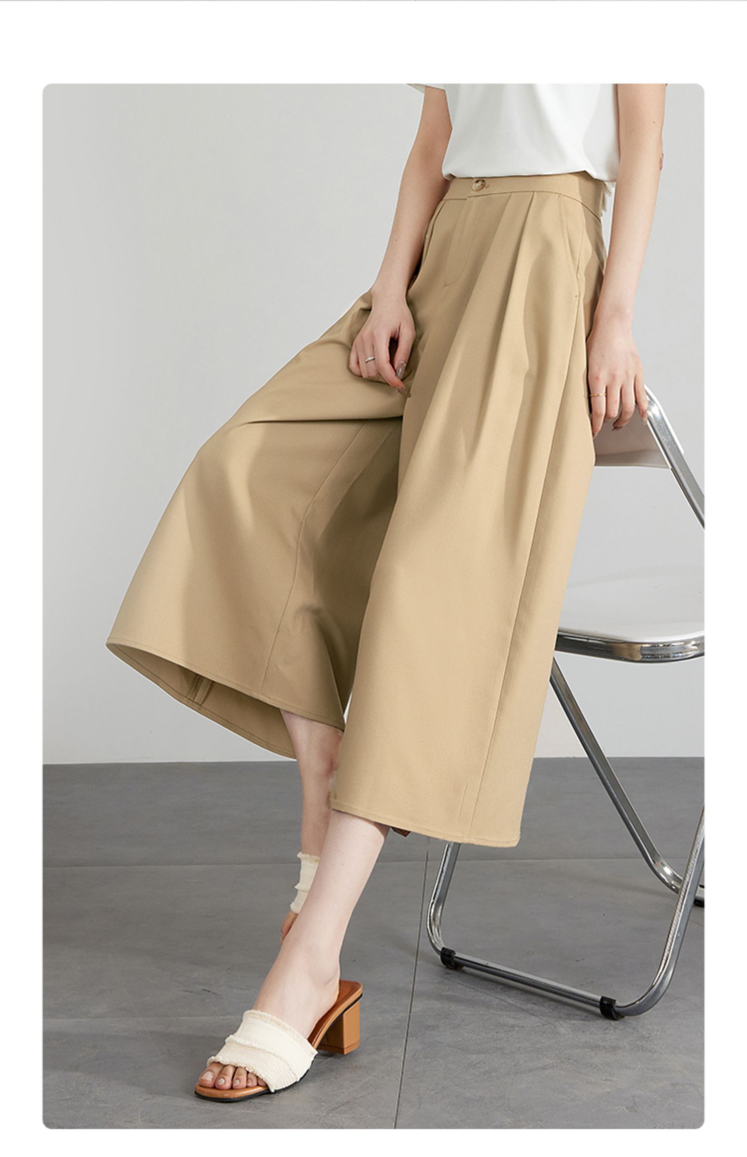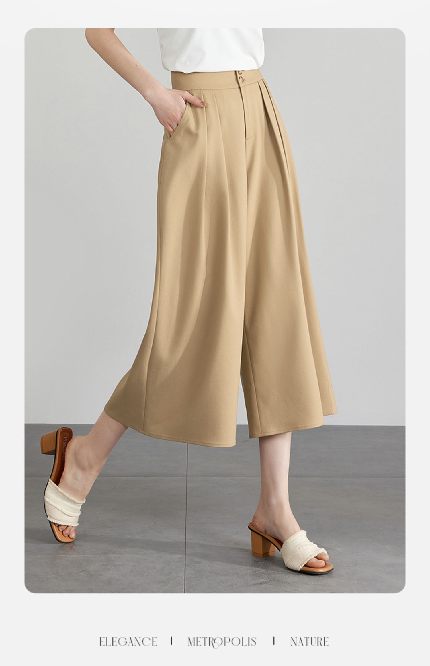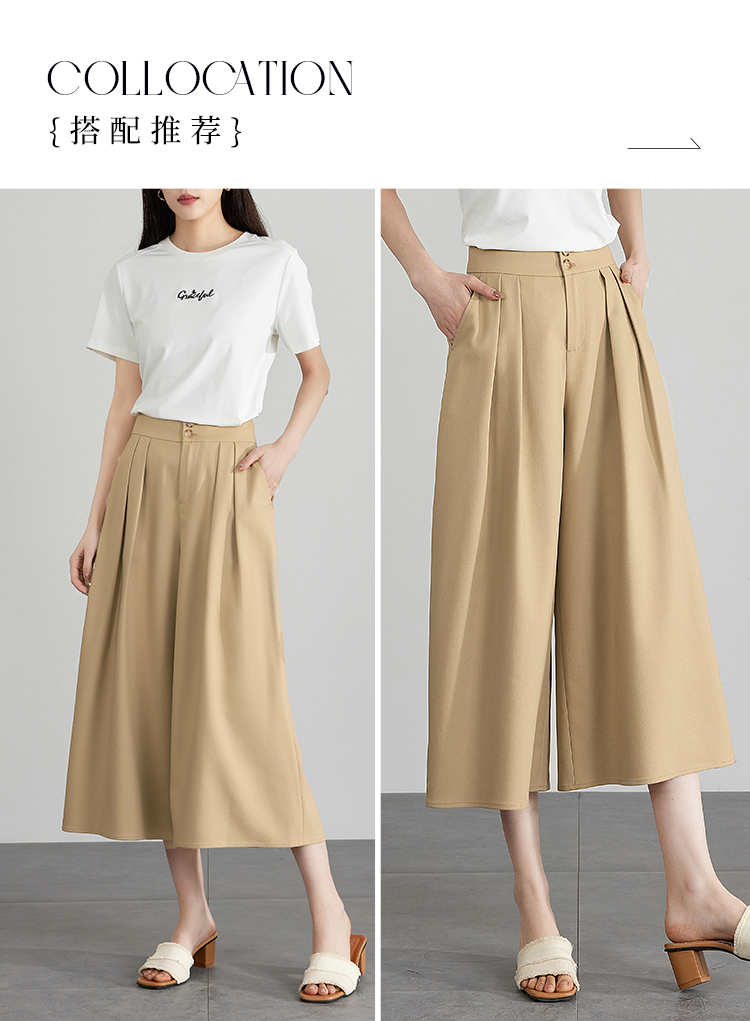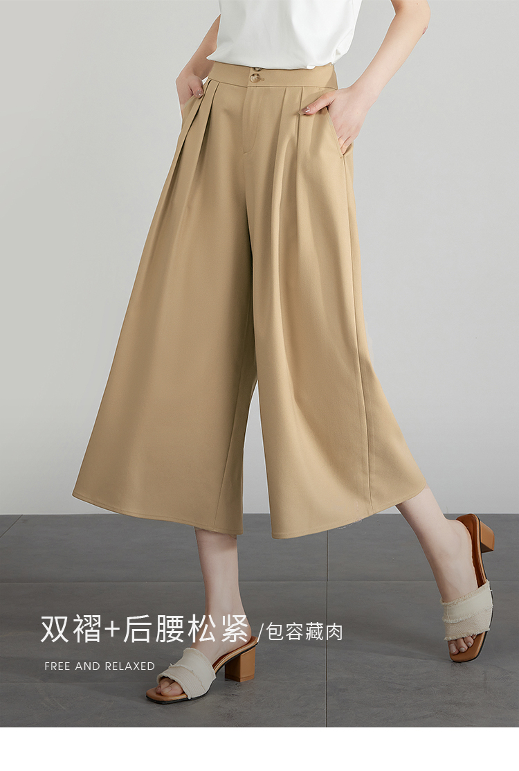 【专属特价】熙世界松弛感八分阔腿裤女2025夏季新款休闲裙裤小个子宽松裤子