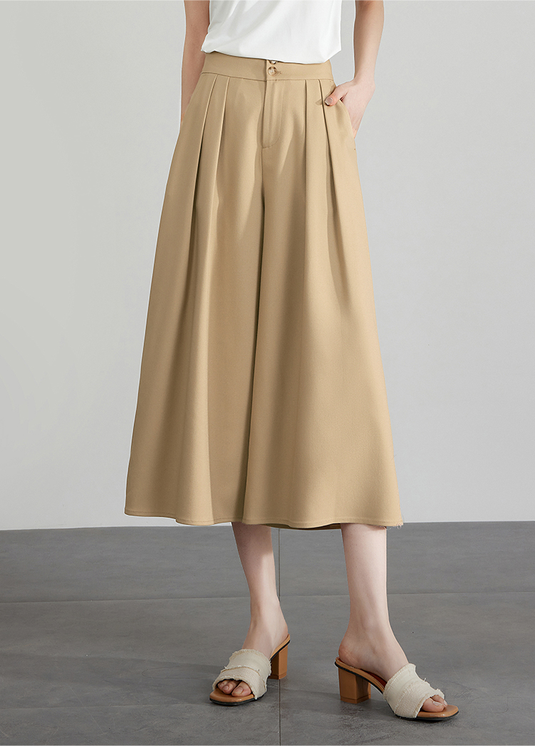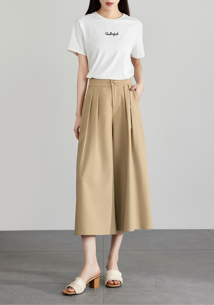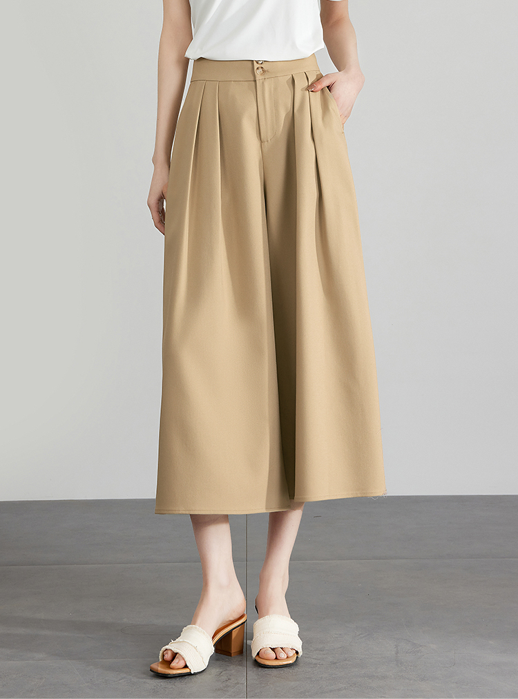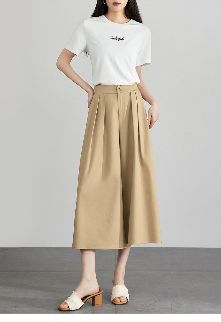 【专属特价】熙世界松弛感八分阔腿裤女2025夏季新款休闲裙裤小个子宽松裤子