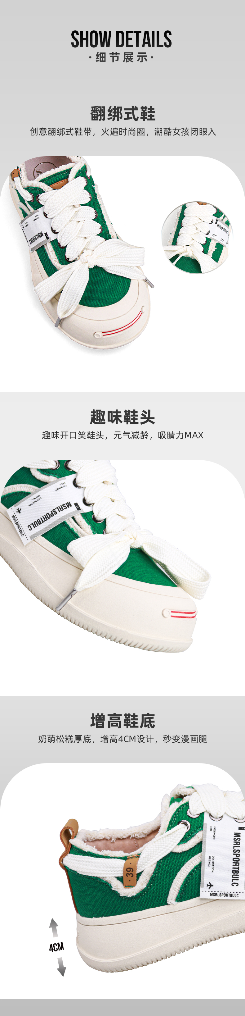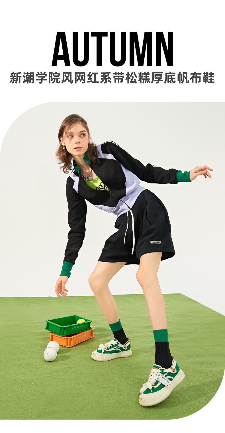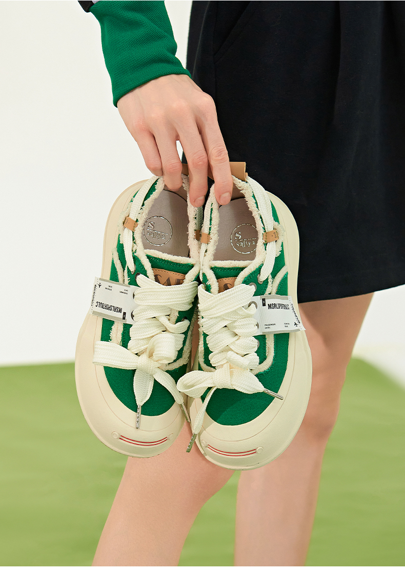 Safiya索菲娅笑脸头网红系带松糕厚底帆布鞋2022秋新款SF23112401 商品图4
