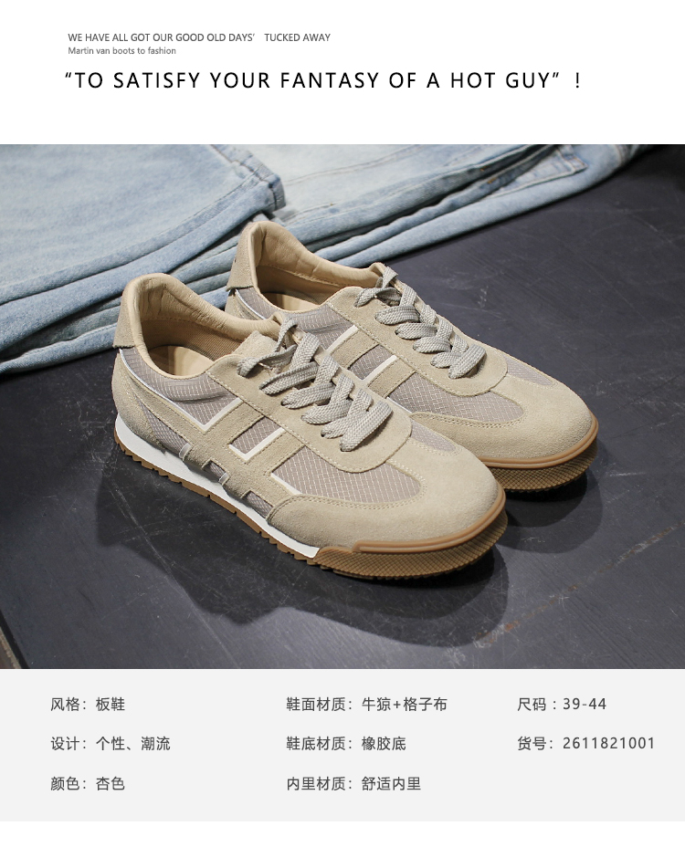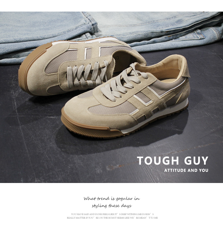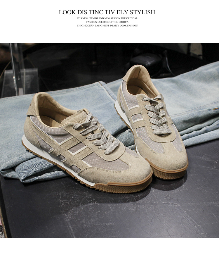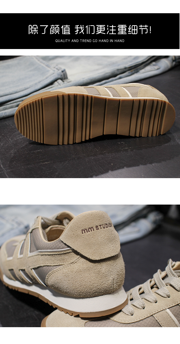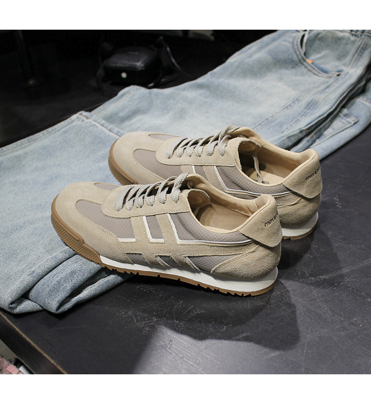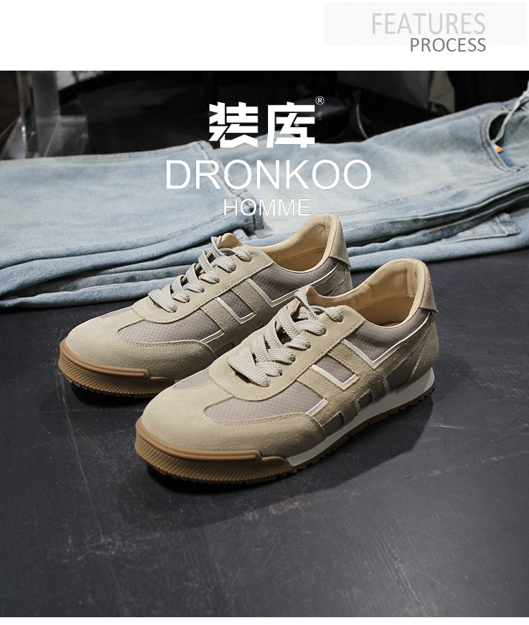 DRONKOO 2026 系带反毛皮拼格纹布复古低帮运动鞋