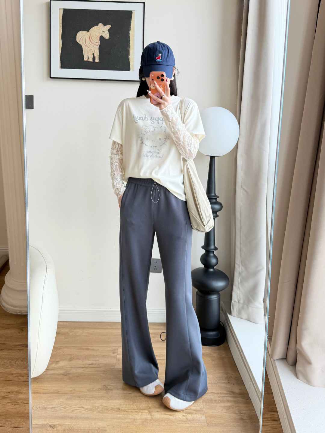 春款 空气感系列 | lu*同款抽绳松紧腰宽松显瘦阔腿长裤!