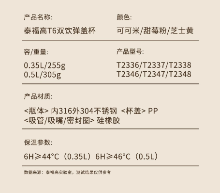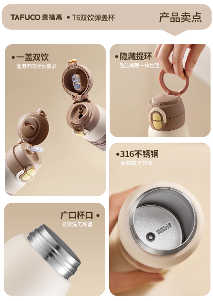 泰福高T6双饮弹盖杯350mlT2336/T2337/T2338
