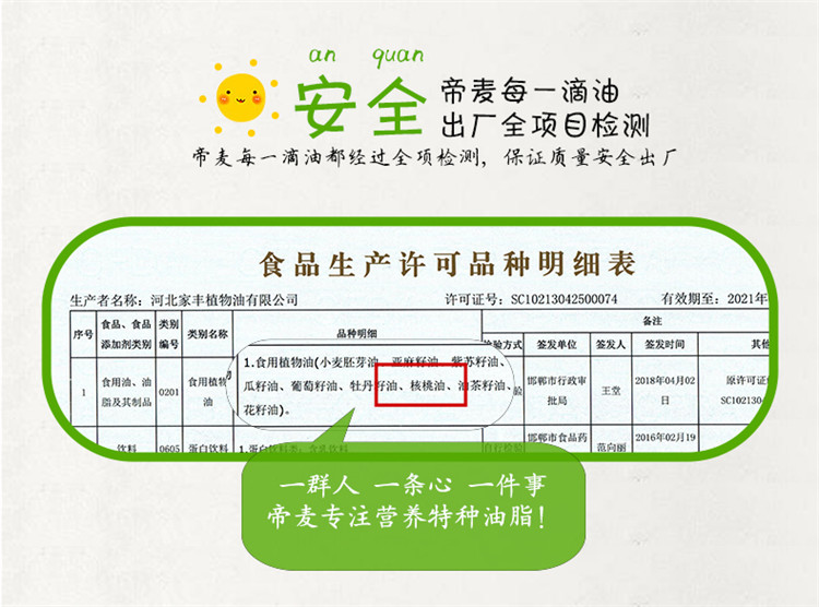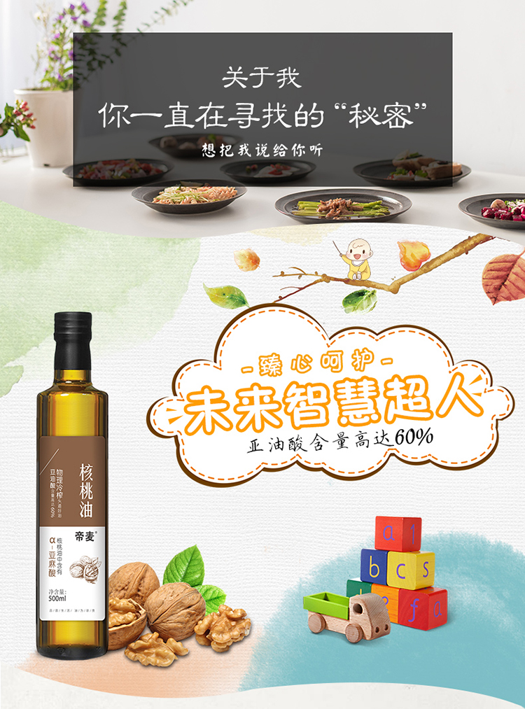 帝麦 食用油 物理冷榨核桃油500ml 适用于婴幼儿宝宝孕妇