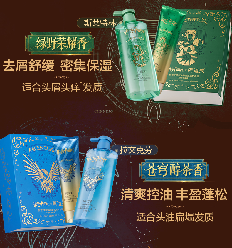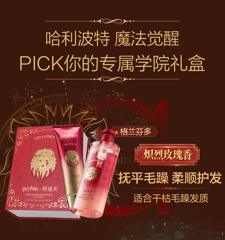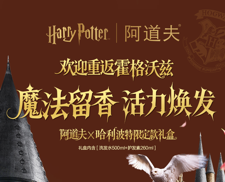 [哈利波特联名] 阿道夫哈利波特香氛洗护套装(有洗发水500ml+发膜260ml)净爽去屑控油柔顺强韧 加赠魔法学院浴巾