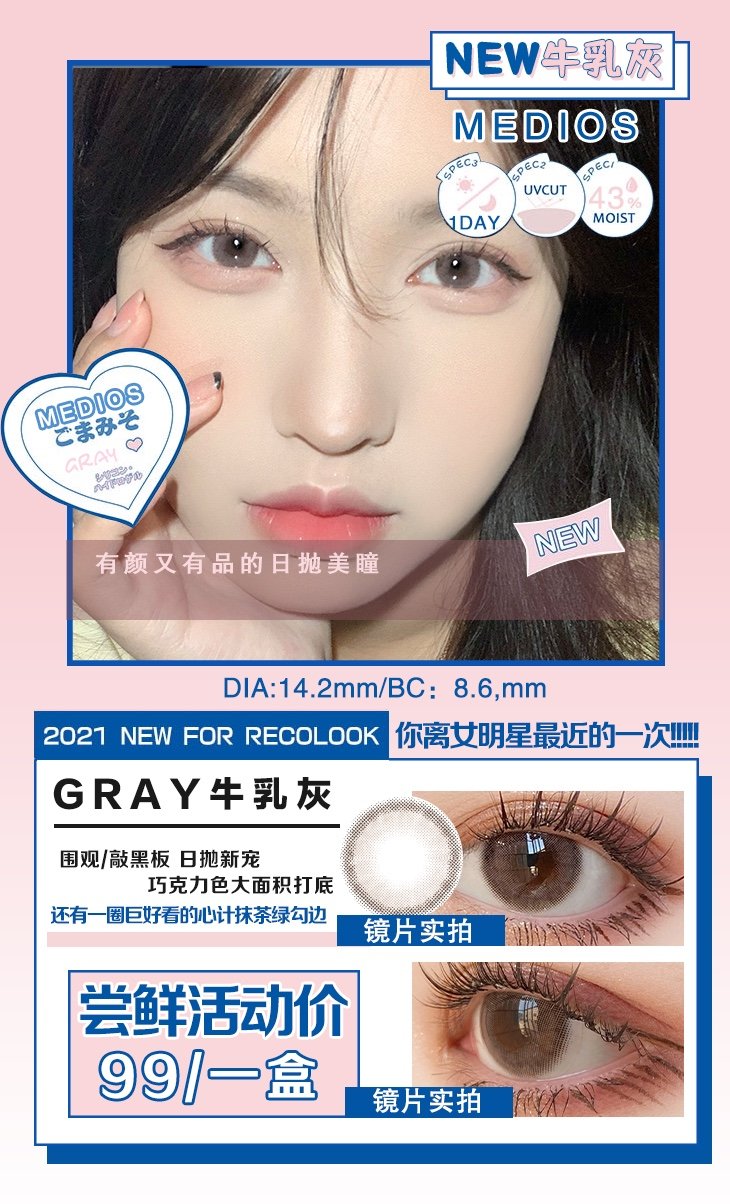 MEDIOS日抛,89/一盒,150/两盒,10片/一盒,如需佩戴工具请备注哦!