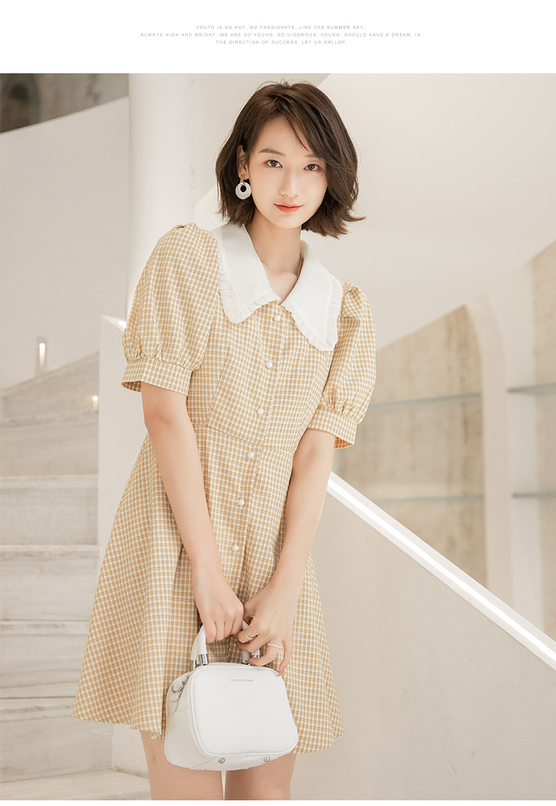 NUTS夏季新品翻领时尚淑女气质短袖连衣裙221101170