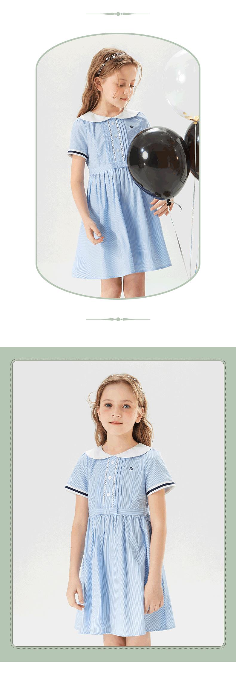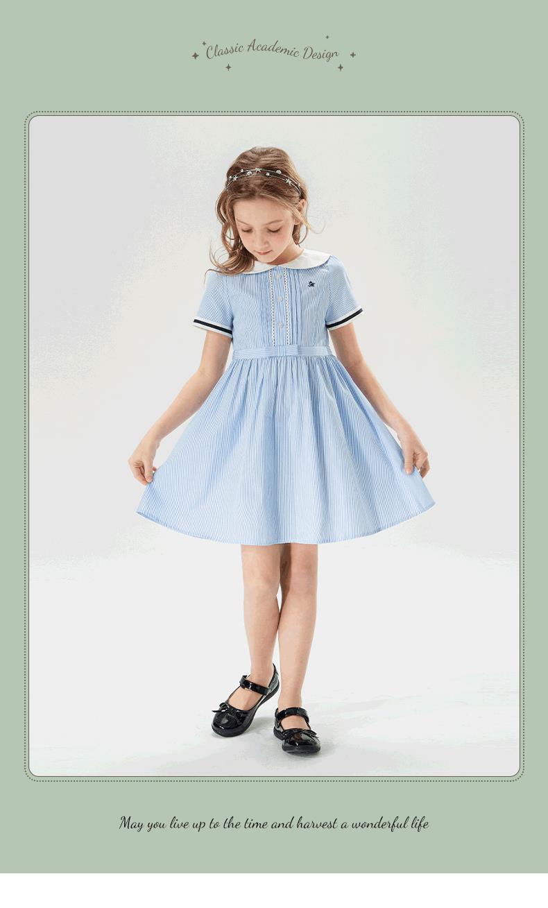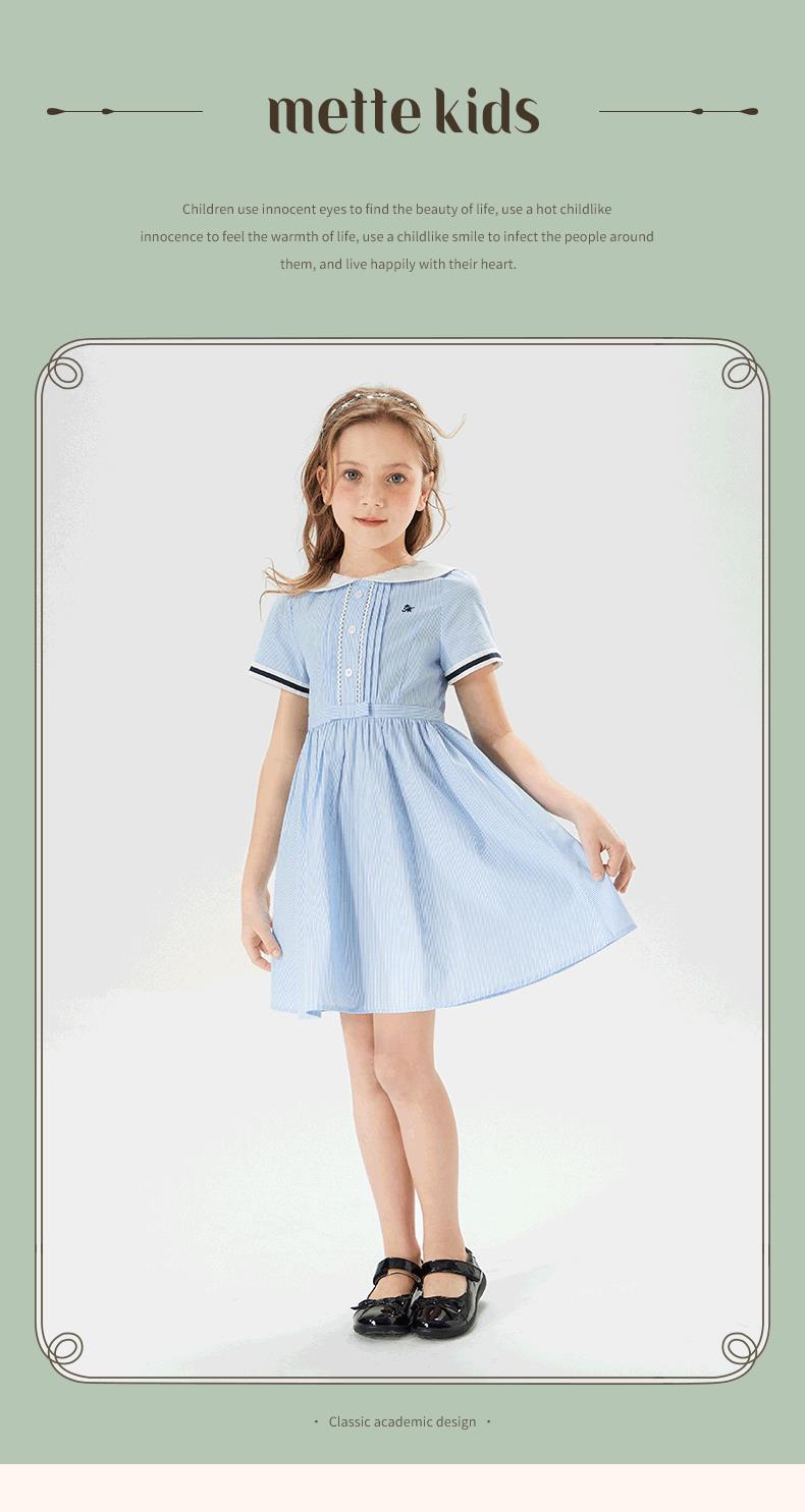 mettekids儿童裙子2022夏季新款女孩洋气时髦白色条纹女童连衣裙