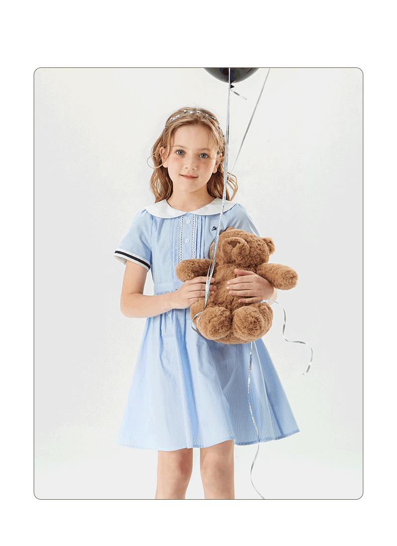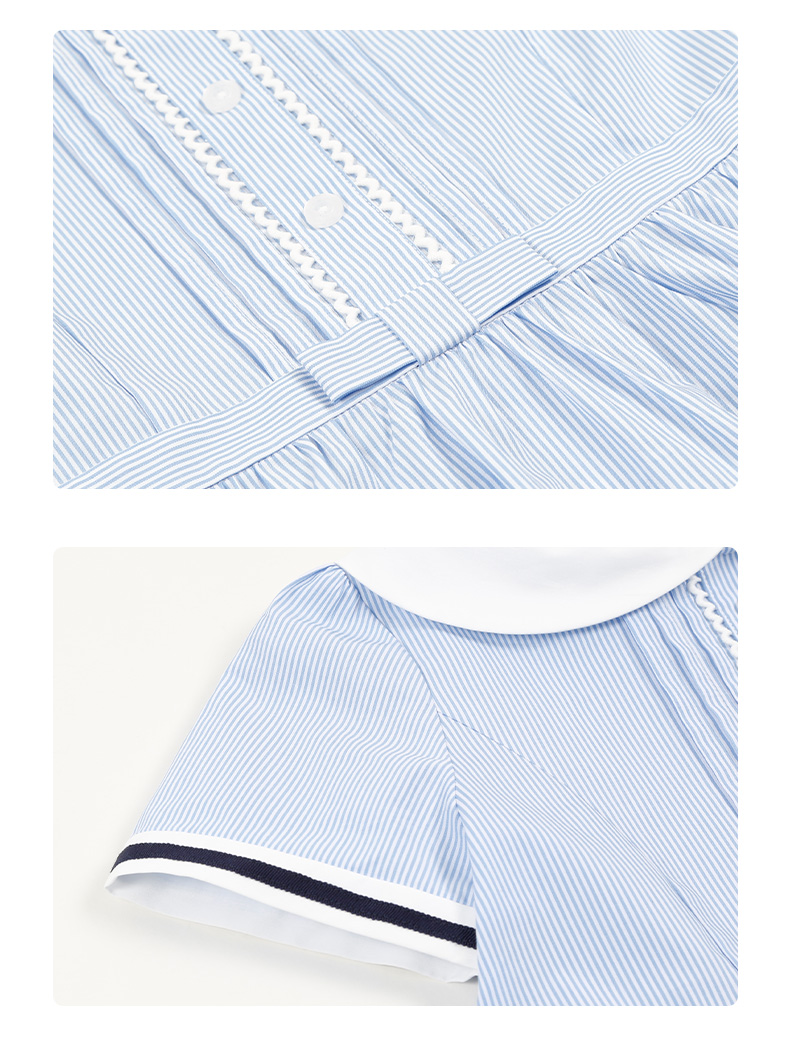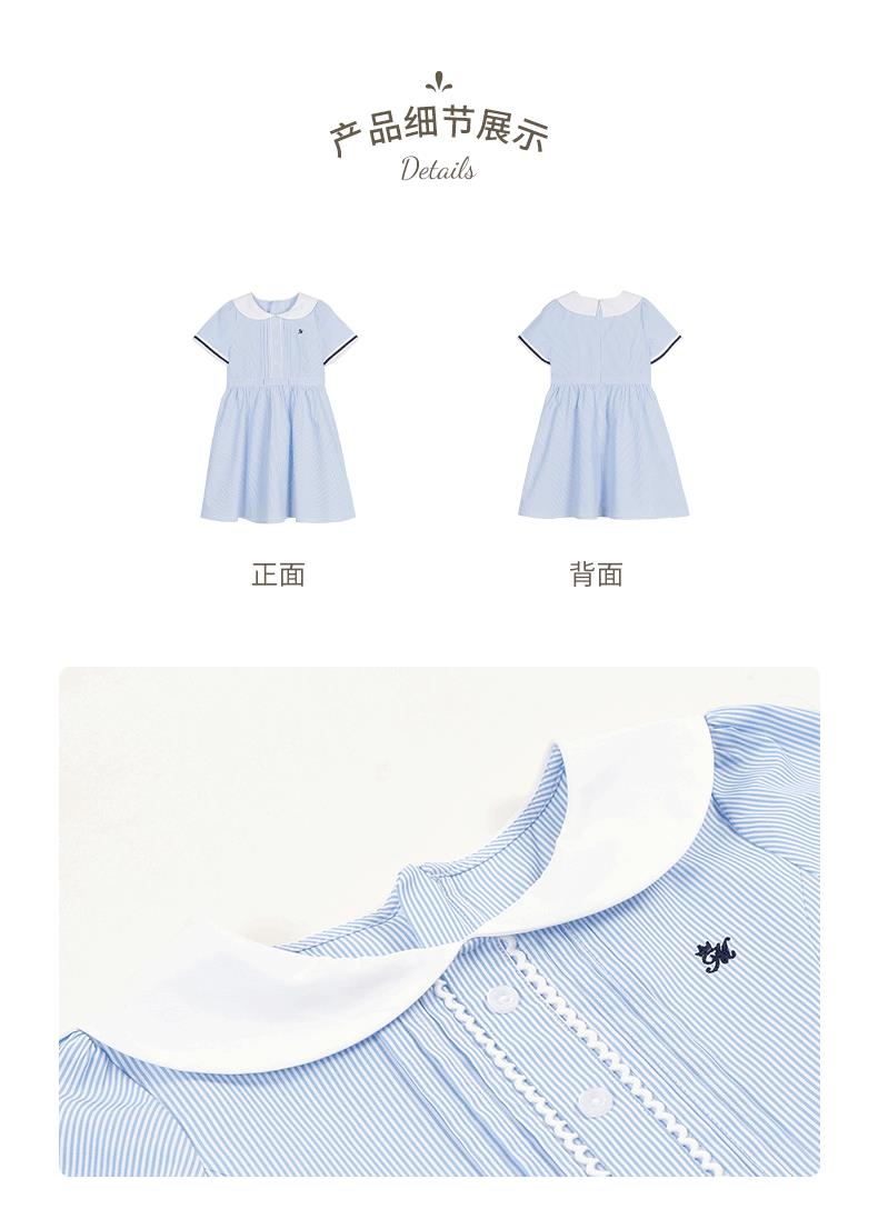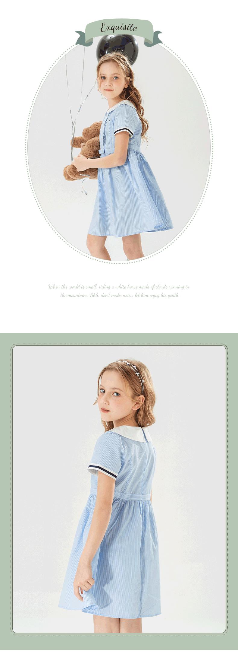mettekids儿童裙子2022夏季新款女孩洋气时髦白色条纹女童连衣裙