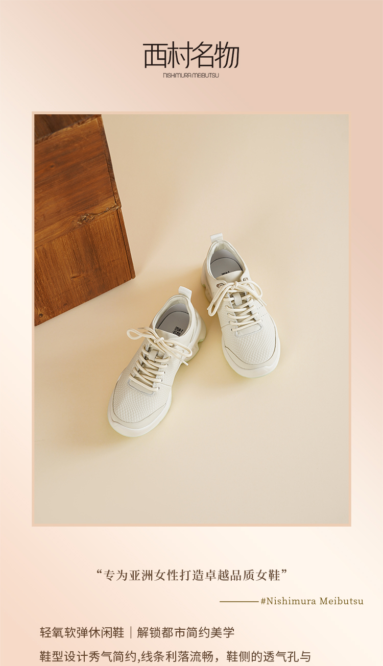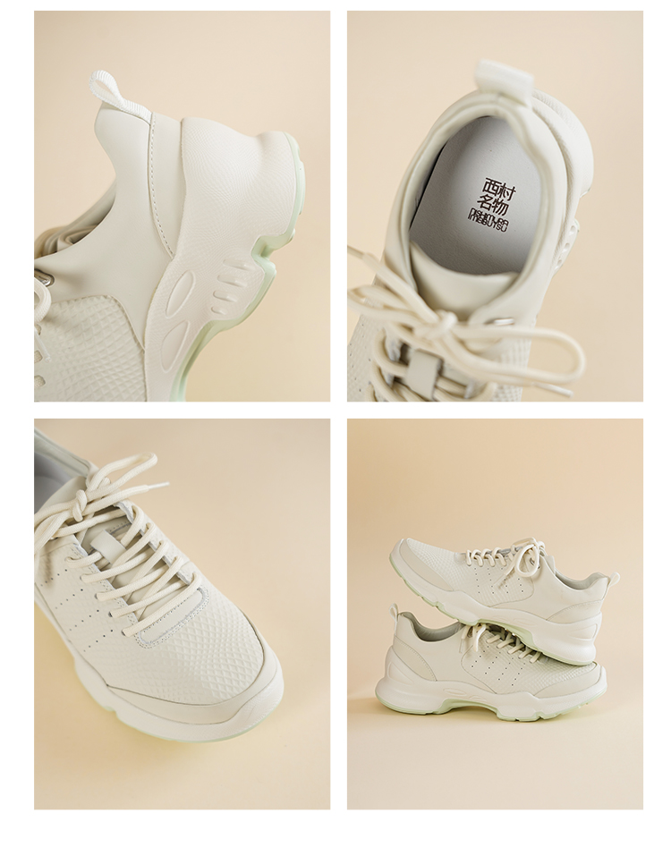 【舒适透气】西村名物2026年春季新款舒软透气防滑大底系带纯色休闲运动鞋小白鞋T26AM18071