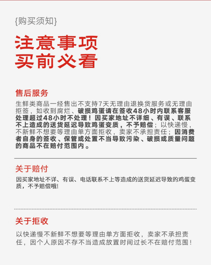温馨提示:新鲜鸡蛋记得收到货及时放进冰箱冷藏储存哦!新鲜鸡蛋0-8℃冰箱冷藏(最佳)(收到货后请及时将鸡蛋从珍珠棉内取出放入冰箱保存,请勿冲洗,请勿久闷,以免影响美味的口感体验哦!)