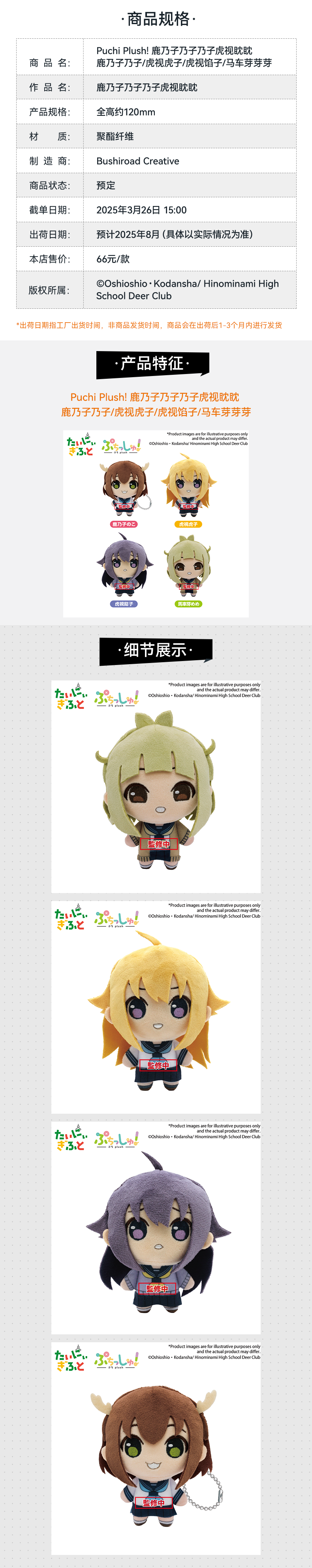 【GSC现货】Puchi Plush! 鹿乃子乃子乃子虎视眈眈 鹿乃子乃子/虎视虎子/虎视馅子/马车芽芽芽