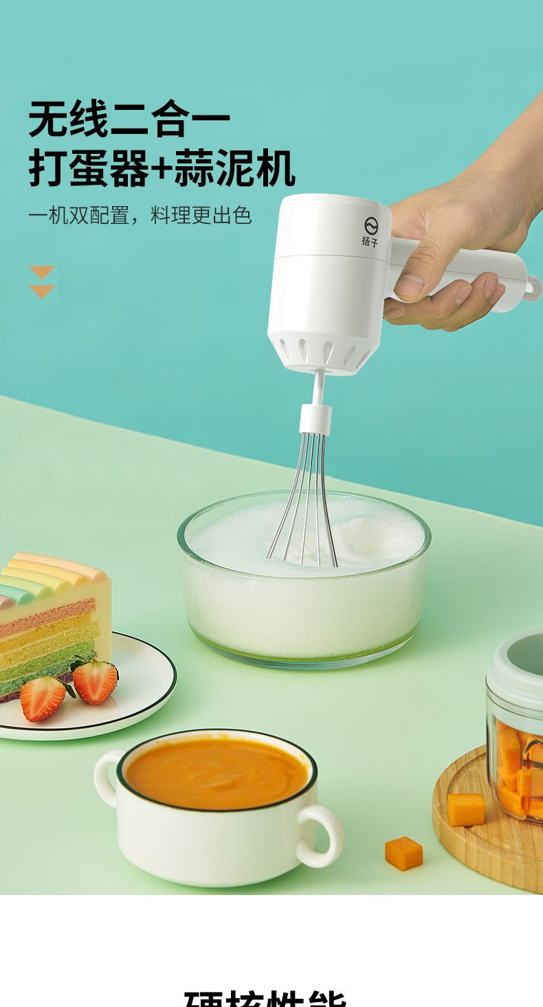 扬子H-D03打蛋器 手持电动料理机家用迷你打奶油机搅拌器烘焙打发器 白色