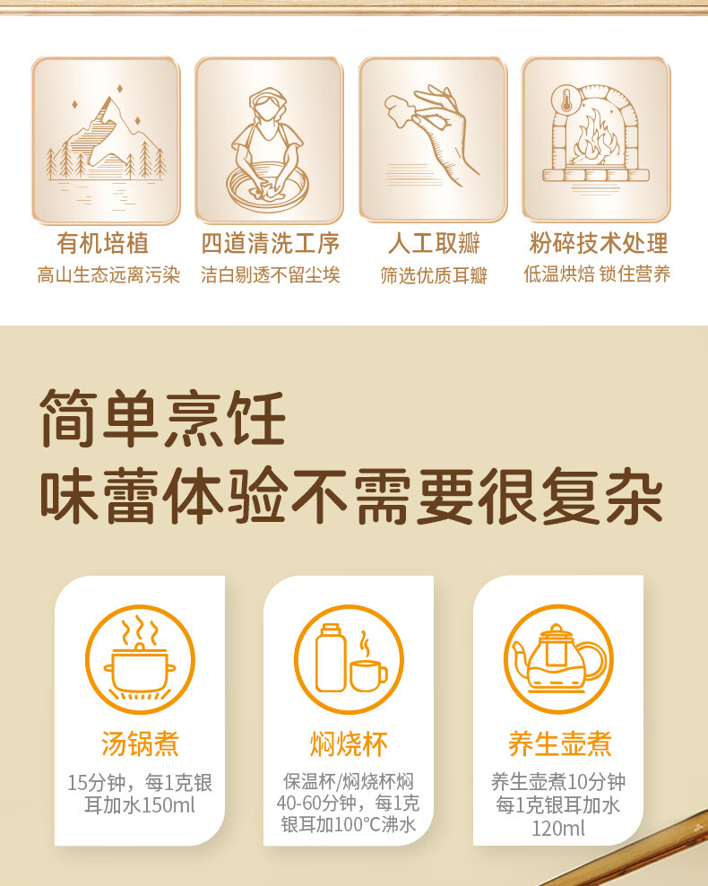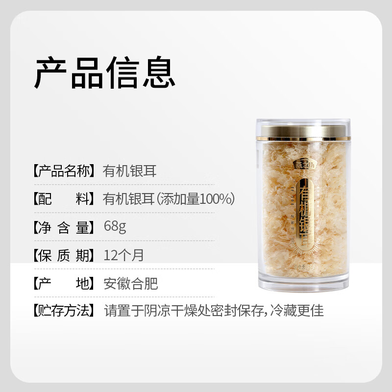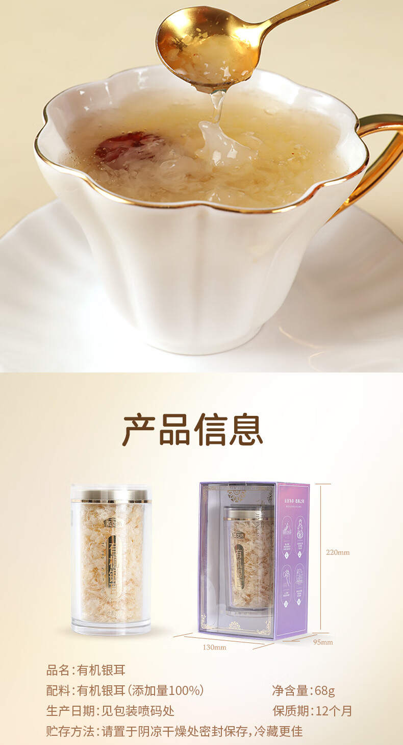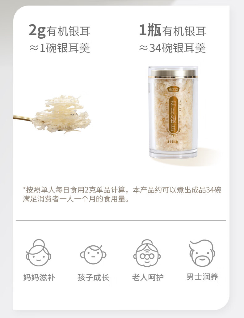燕之坊有机本草银耳68g免洗免泡白木耳糯耳有机干货古田特产银耳羹