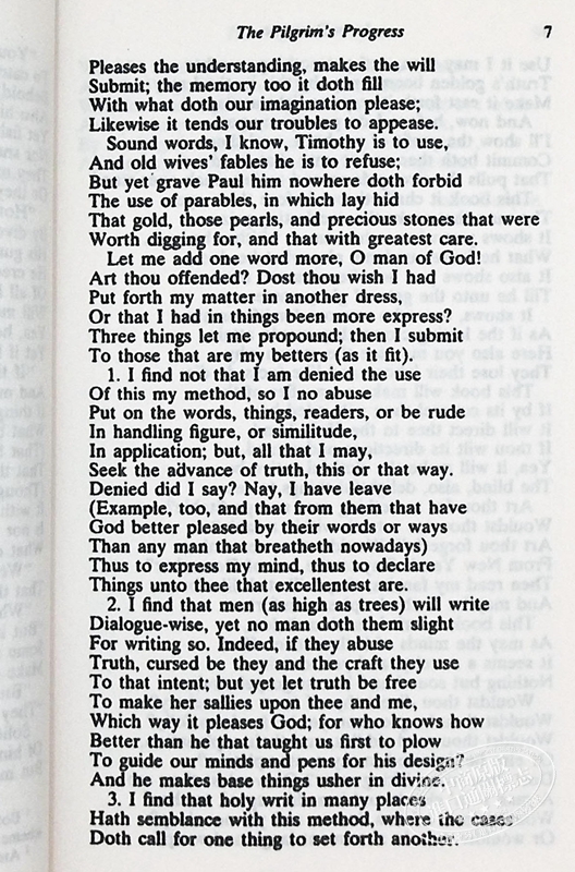 这两个旅程目的及过程基本相似,都是经历各种艰难险阻,获得灵魂拯救。但也有不同处,一部侧重基督徒作为真理的追寻者单独面对神圣的心路旅程,而第二部则侧重于基督徒作为爱的联合体共同追求天国目标的团体生活。其团体囊括了各种类型的基督徒,他们妇孺老幼都有,信心大小不一,胆量力量各异,但在各种境遇中彼此相爱劝勉,彼此扶持担待,并在天路上一同成长。尤如一个满携着爱的家庭,没有竞争、求胜,都是和谐、秩序、体谅、担待和包容。