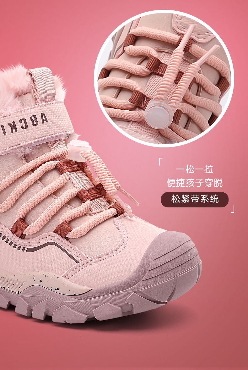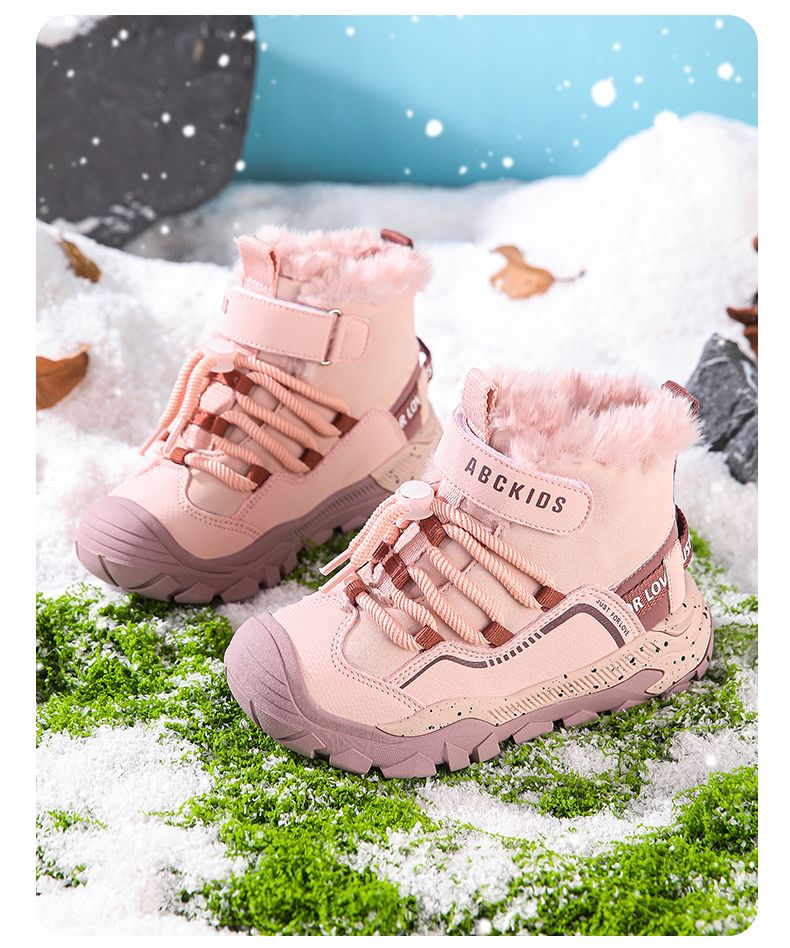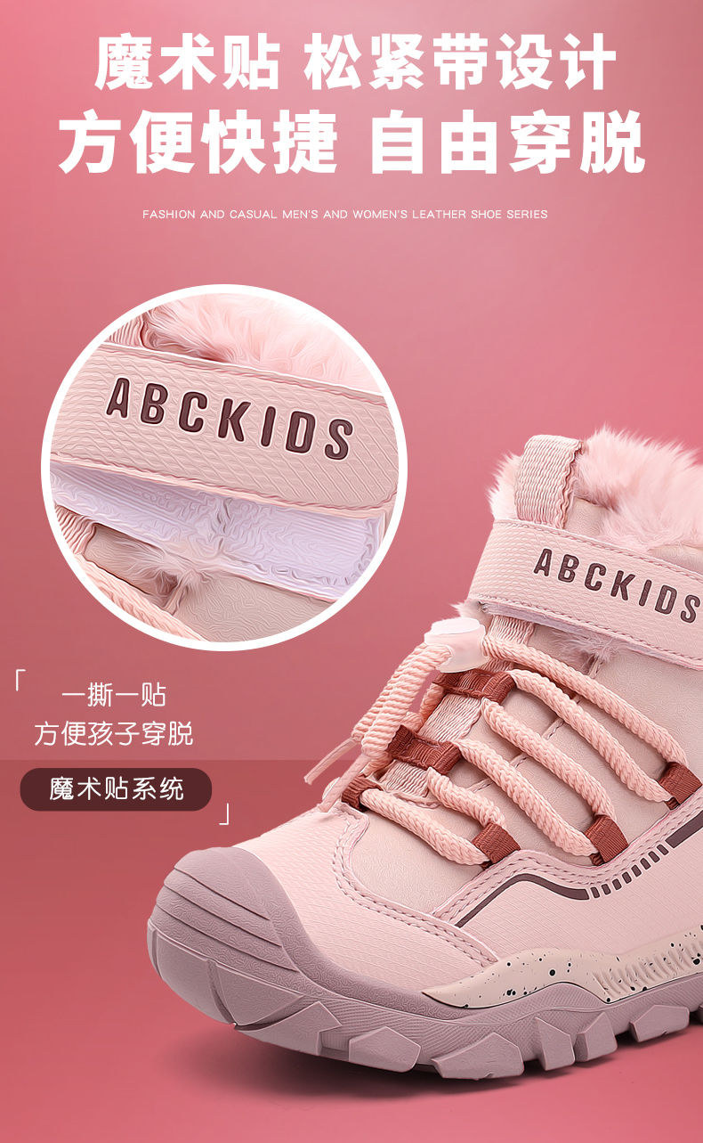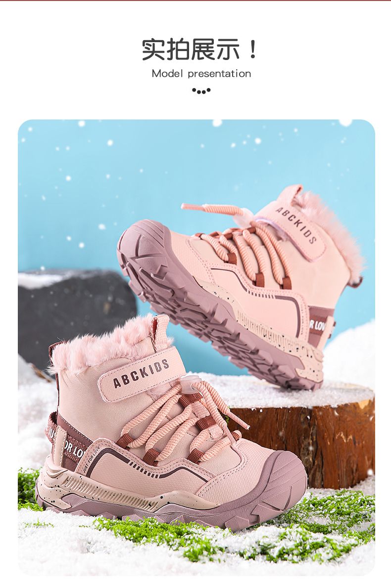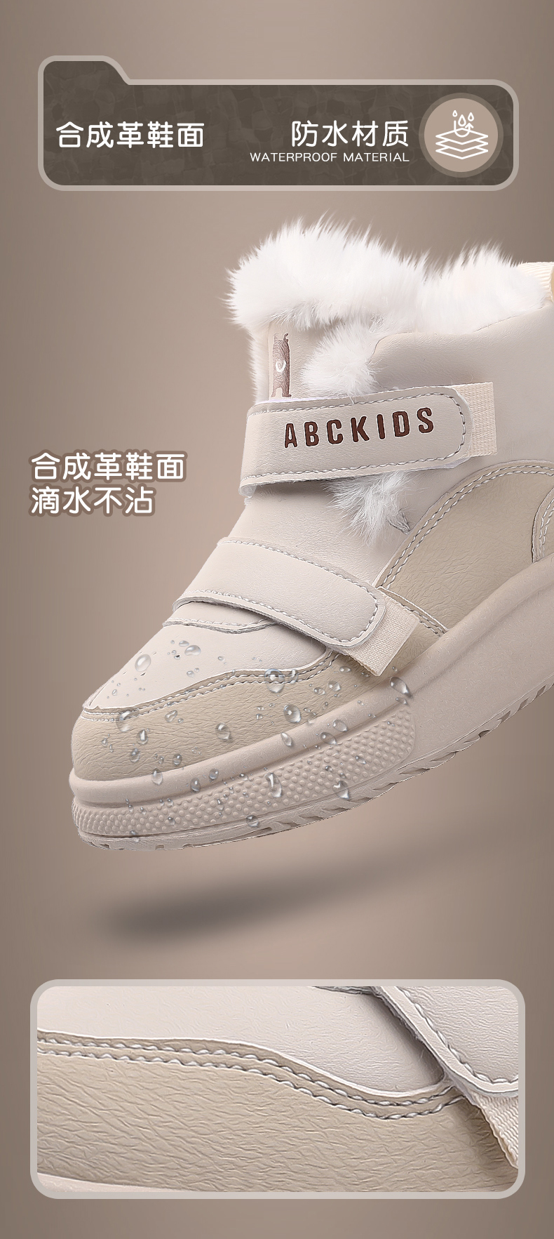 Abckids儿童雪地靴冬季新款加绒加厚男童棉鞋户外防滑女童棉靴子28-38