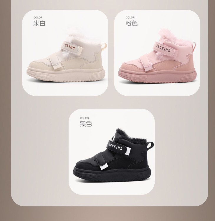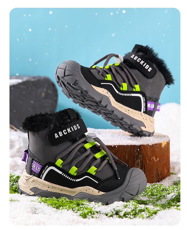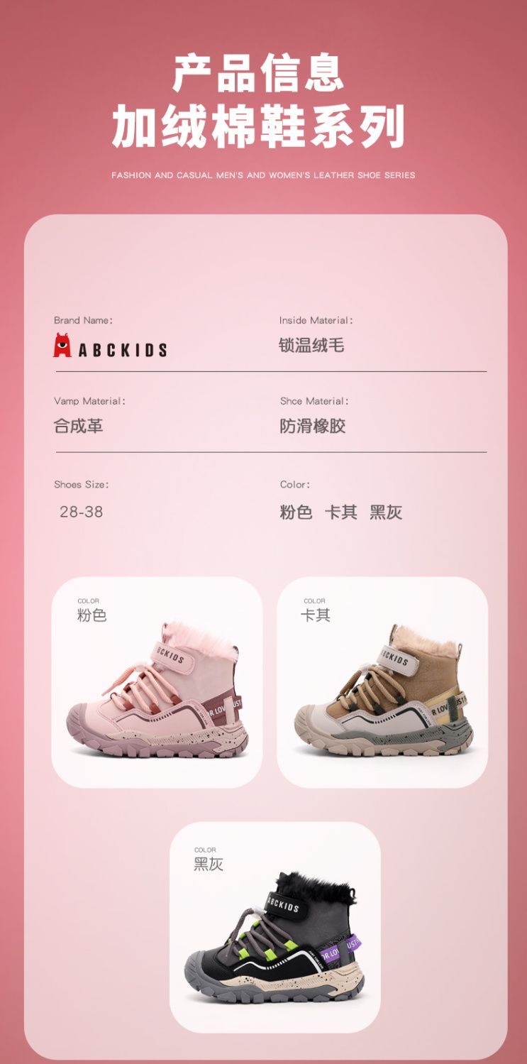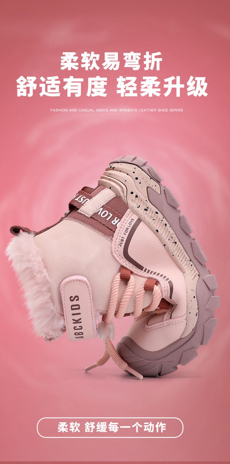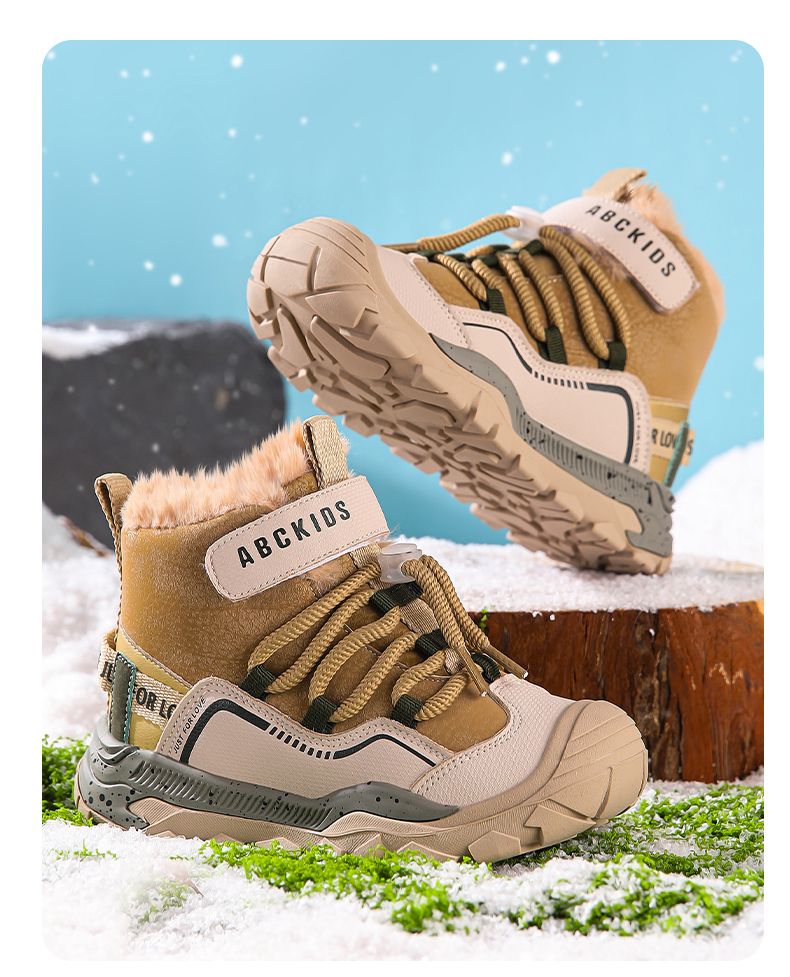 Abckids儿童雪地靴冬季新款加绒加厚男童棉鞋户外防滑女童棉靴子28-38