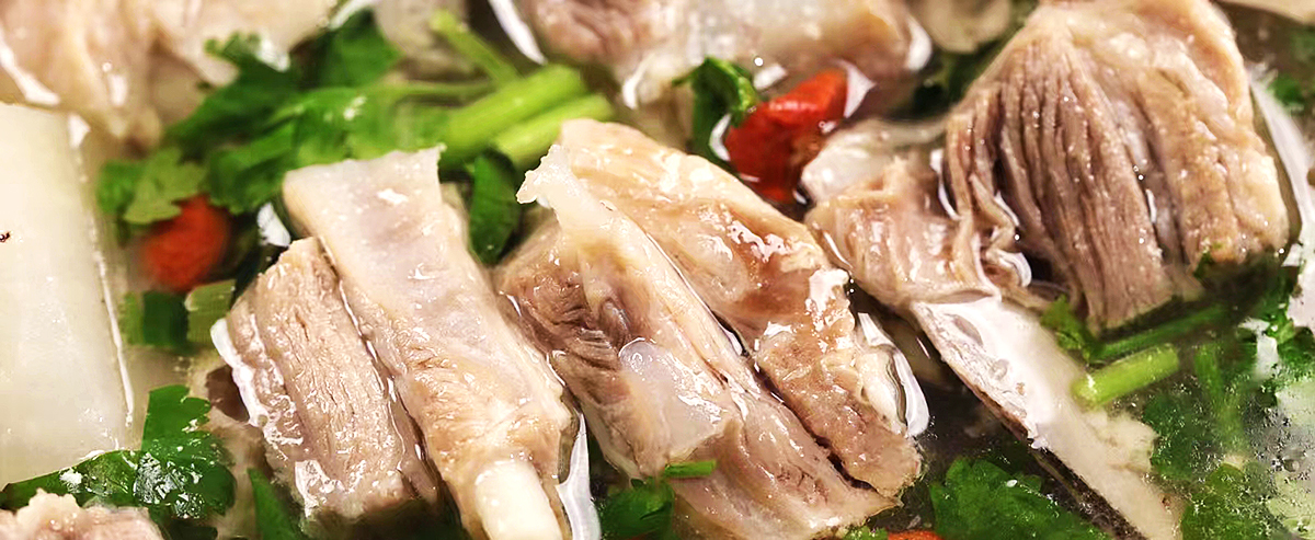 几叶香菜、几星葱花在奶白色清汤的映衬下,像翠绿的小船,招引着食客的味觉靠岸!萝卜的鲜甜渗入滩羊肉的筋膜,收住了羊肉的鲜,锁住了羊汁的香,细腻纯粹的口感!
